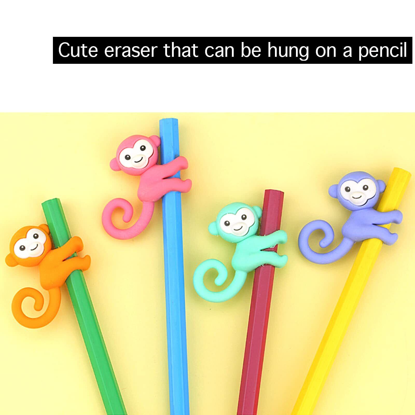 Ranvi 36 PCSモンキー消しゴム、ハンギングペンシル消しゴム、教室の報酬、学生の文房具、パーティーデコレーションギフト