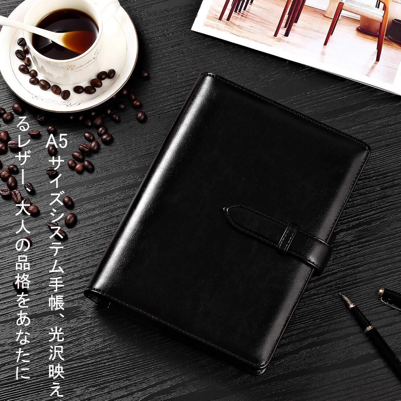 【新春セール】【RIHUA】 システム手帳 A5 ノート 6穴リング メモ帳 リフィル付き スケジュール帳 カード収納 革 a5システム手帳 手帳カバー ビジネス手帳 オフィス用品 (ブラック)