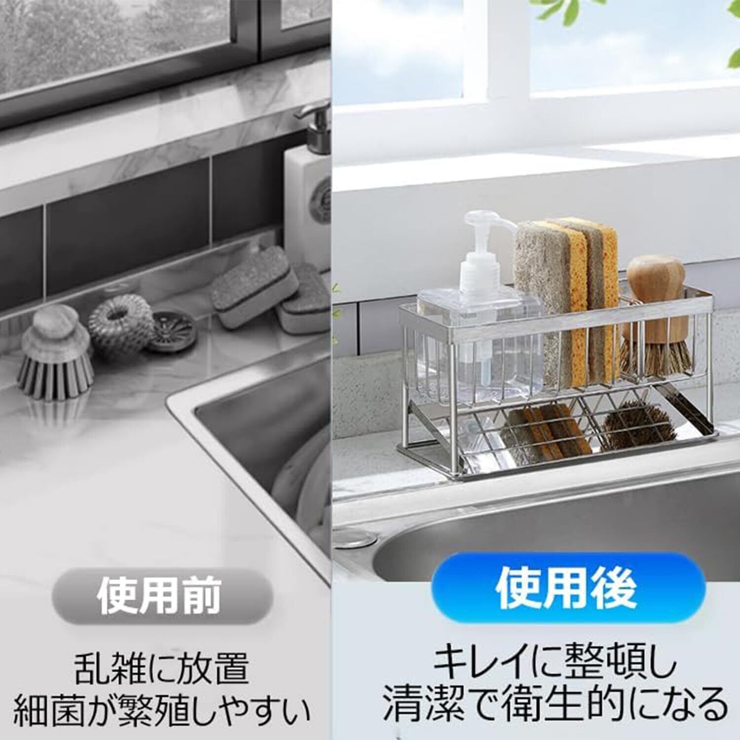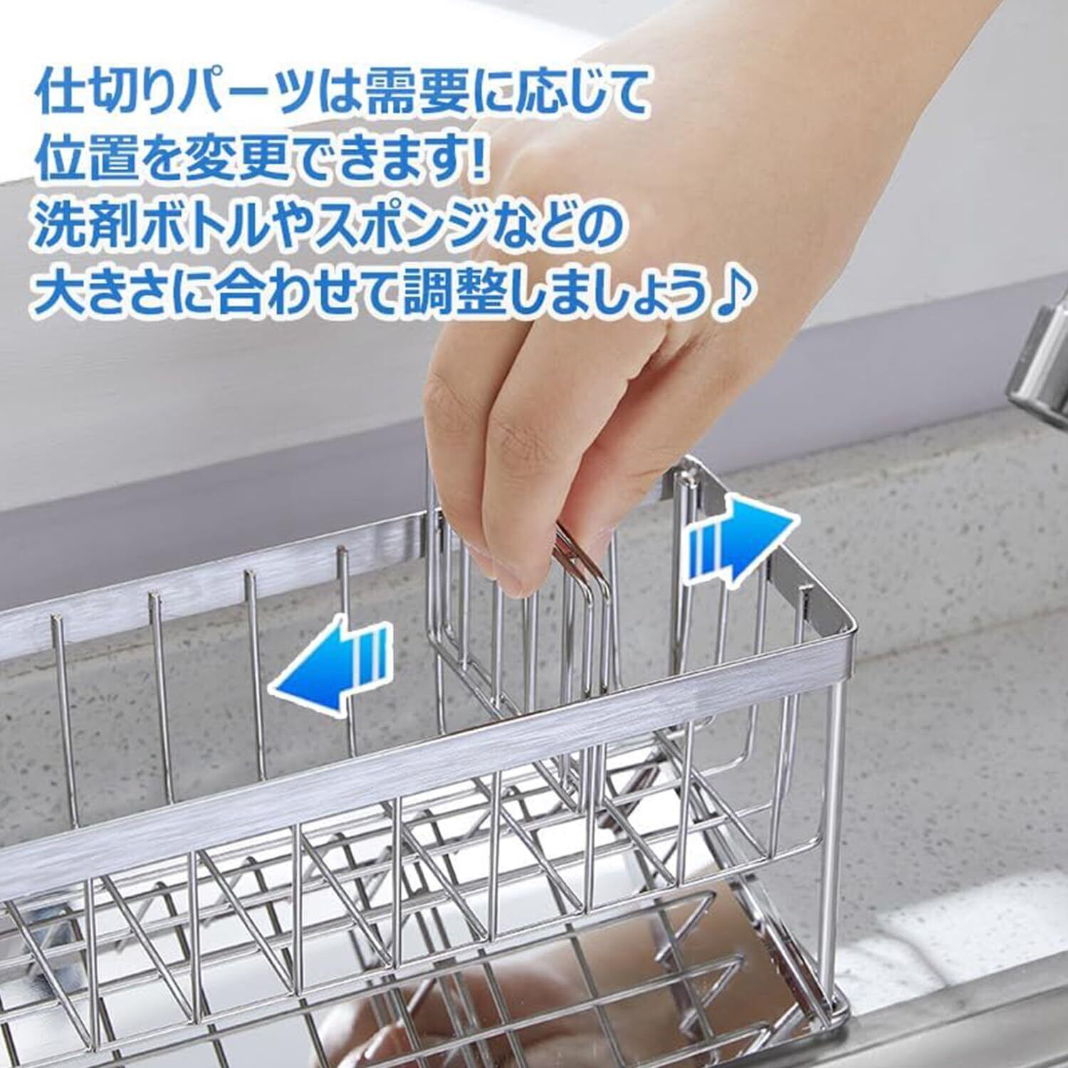 Rockykey スポンジホルダー キッチンスポンジ置き 防錆 洗剤置き 収納ホルダー スポンジラック 可動式仕切り板付き 洗剤ボトルホルダー ステンレス製 軽量 洗面所/キッチン収納用