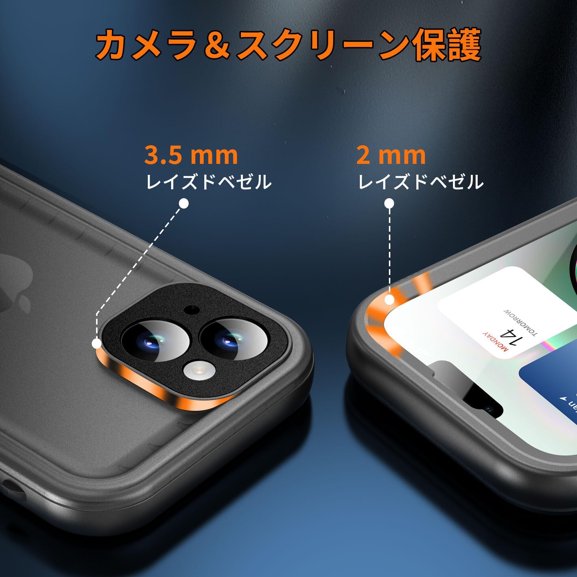 【画面保護機能 & クリアなサウンド】- 新型PETから作られた内蔵スクリーン保護フィルムは擦れにくくタッチスクリーンが良く、3mの高さから落下した際に破裂することがなく、四角枠にもバンパーが付属し、保護を提供しています。強化ガラスフィルのように割れません。充電ポート付近はA+級透音膜などの特殊設計を採用し、通話、映画、音楽効果は他のアイフォン14用360度両面ケースや防水ケースよりも優れています。