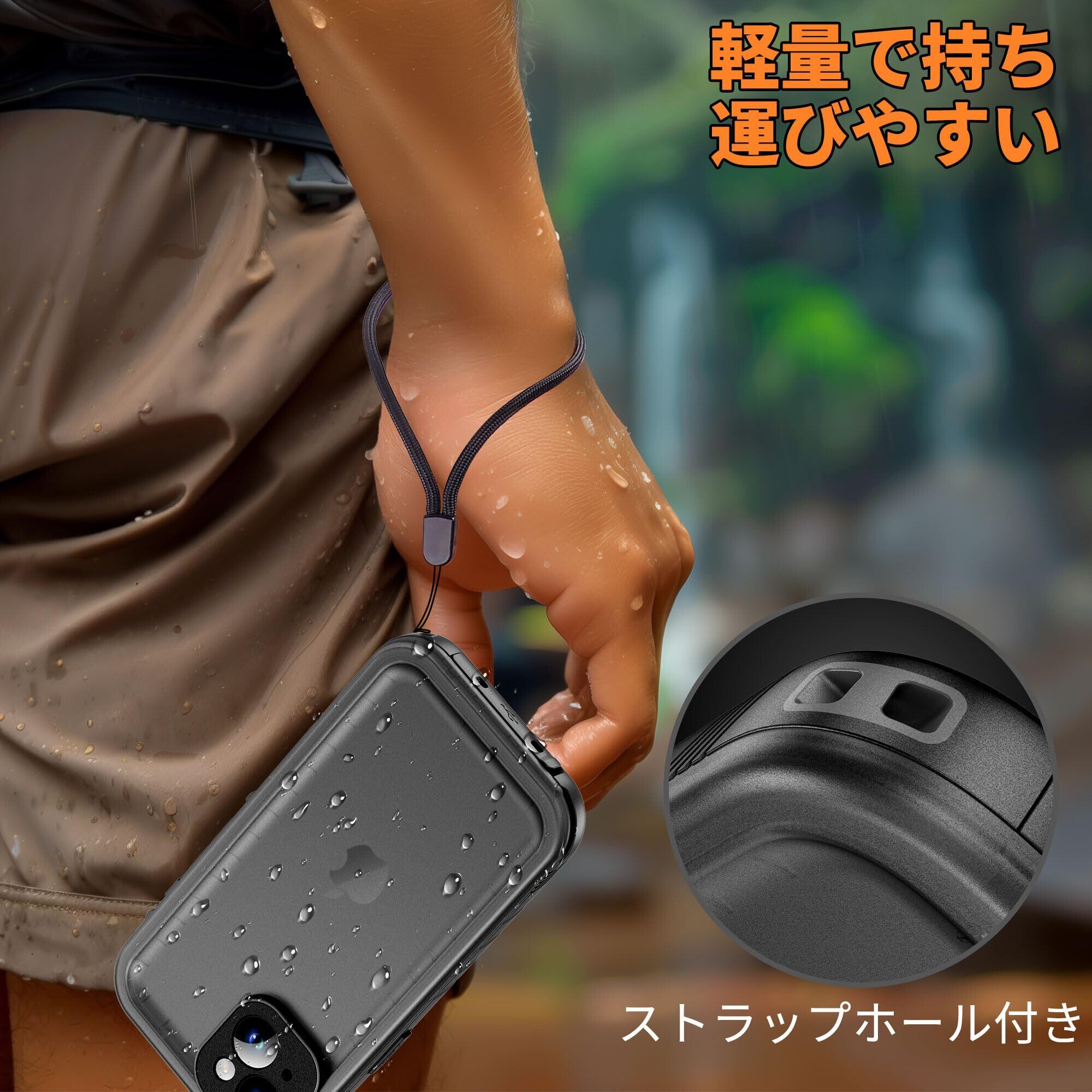Cozycase iPhone 14 用 ケース - iPhone 14 用 防水ケース - 完全防水 防塵 2m 耐衝撃 360度 全面 両面 軽量 米軍 カメラ保護 ストラップ付き 海 お風呂 水中撮影 洗濯可能 iPhone14 用 ケース - 最強 頑丈 人気 ワイヤレス充電 アイホン14 用 ケース iPhone 14の携帯カバー「2眼レフ-6.1インチ-黒」
