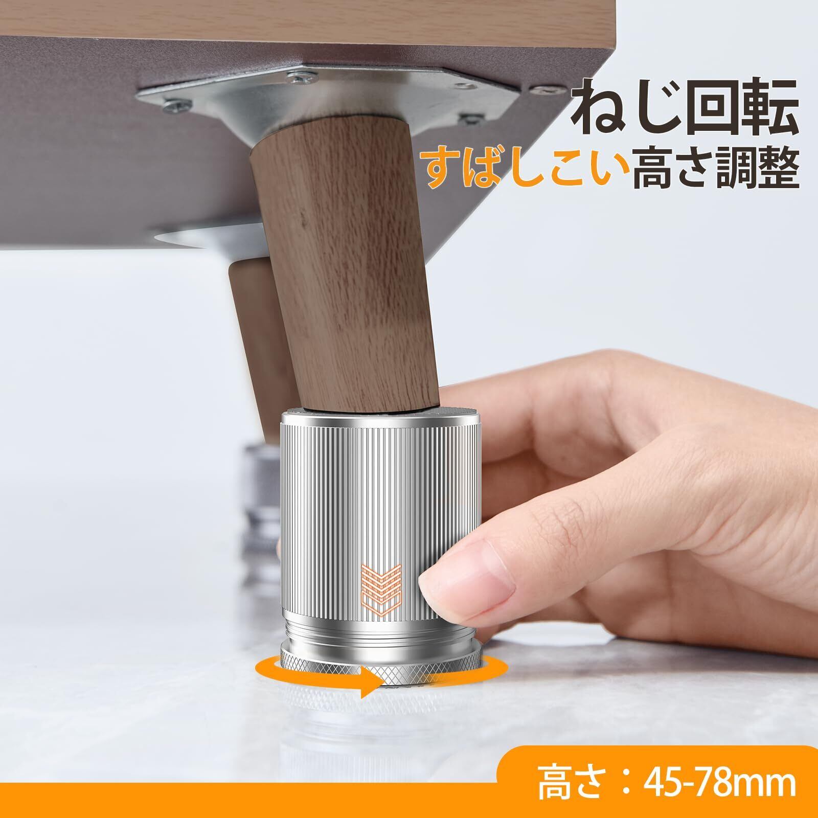 bifine テーブル 脚 継ぎ足し 回転式 4個セット 机 高さ調整 洗濯機 かさ上げ 回転調節 アルミ合金製 継ぎ足 テーブル高さ調整器具 ねじ回転 45-78mm高さ調節可能 取り付け簡単 家具高さ調整/防振/ノイズキャンセリング/滑り止め (シルバー)