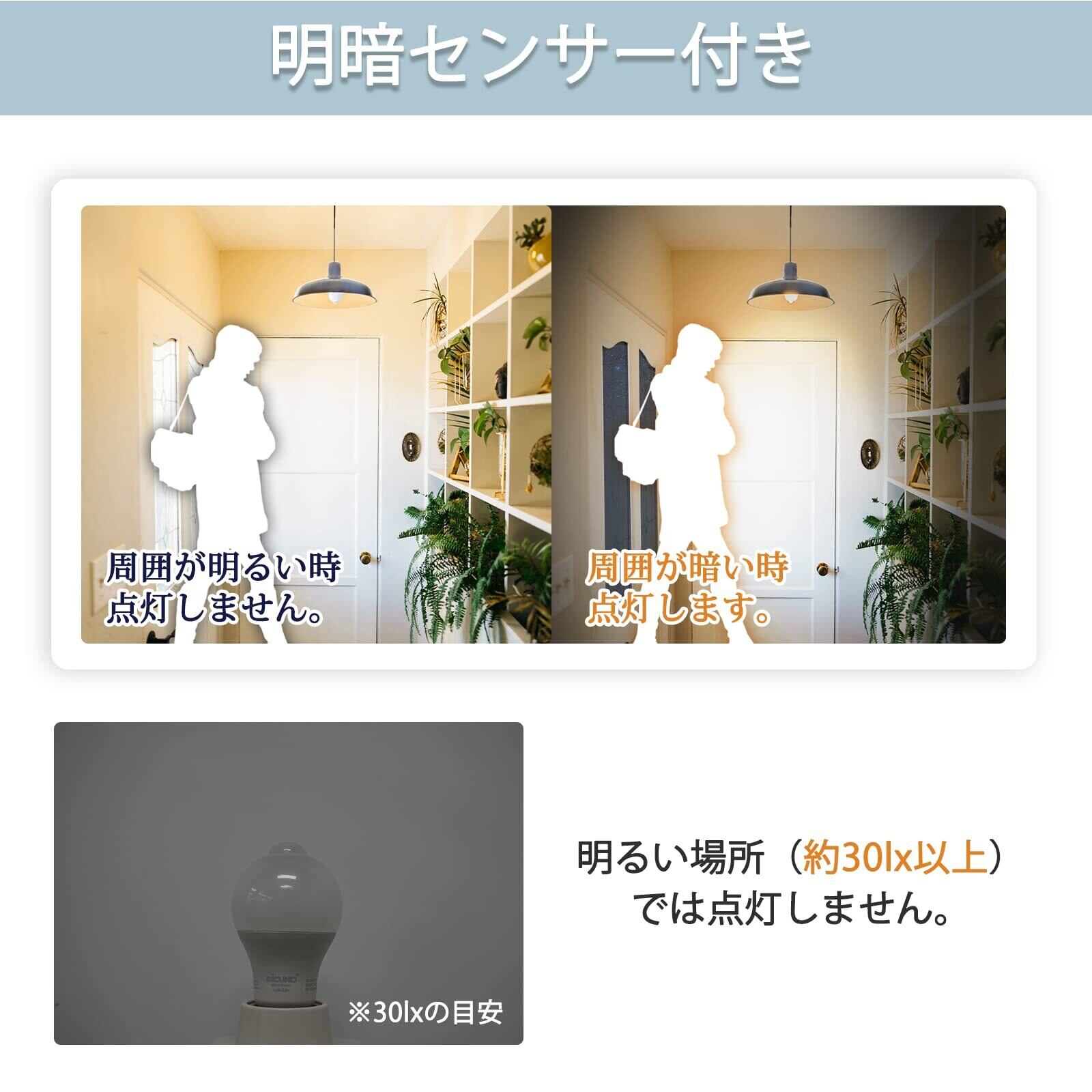 【明暗センサー】周りの照度が30lx以上の環境では点灯しませんので、暗い場所(30lx以下)でご使用ください 。照度に迷った場合、商品ページの画像に照度30lxの目安をご参考ください。
