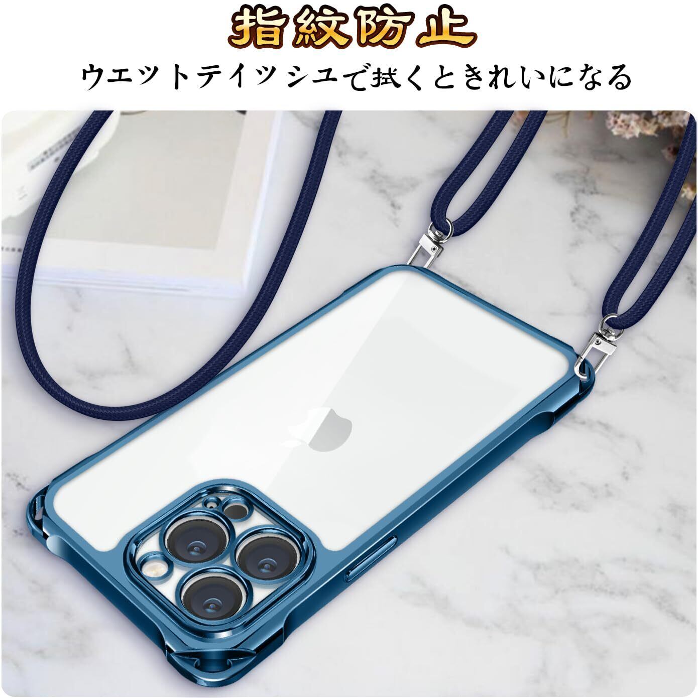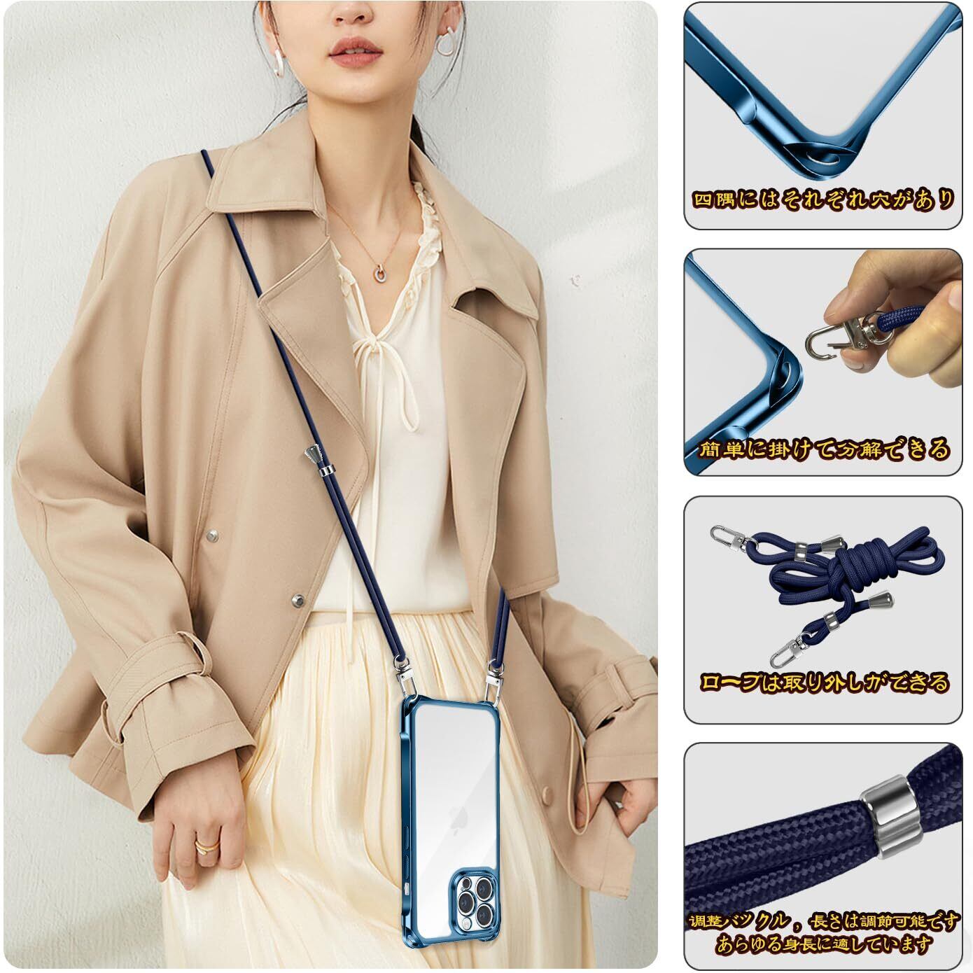 iPhone 13 Pro ケース ショルダー クリア iPhone13 Pro スマホケース アイフォン13Pro カバー 肩掛け 斜めかけ 縄掛けケース 耐衝撃 透明 TPU 薄型 軽量 携帯ケース 紐付き 斜めがけ 織りストラップ付き ネックストラップ 長さ調整可能 取り外し可能 落下防止 紛失防止 ワイヤレス充電対応 (ブルー)