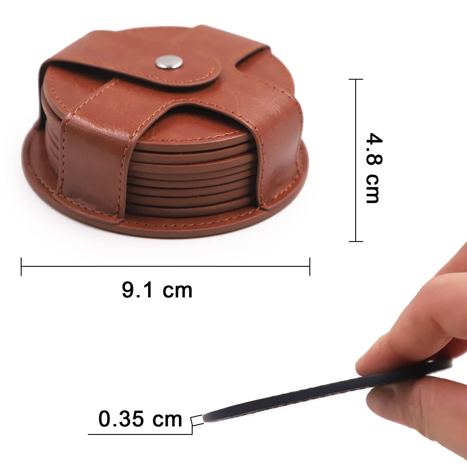 TOSSOW コースター PU 収納ケース付き コースター 円形 カップマット 防水 耐熱パッド コースター 8個セット(ブラウン)