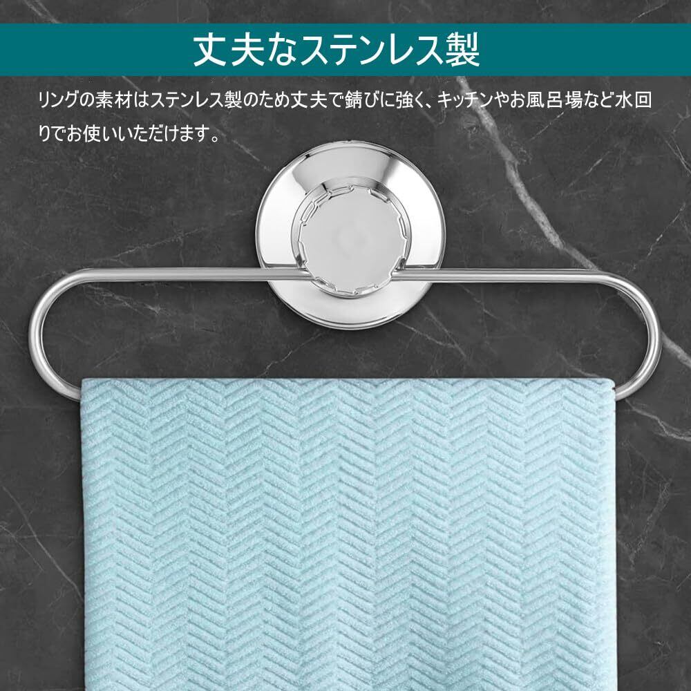 吸盤式タオルリング 23.5cm ステンレス レバー式 タオル掛け バスルーム用ハンドタオルホルダー タオルホルダーキッチン タオル収納