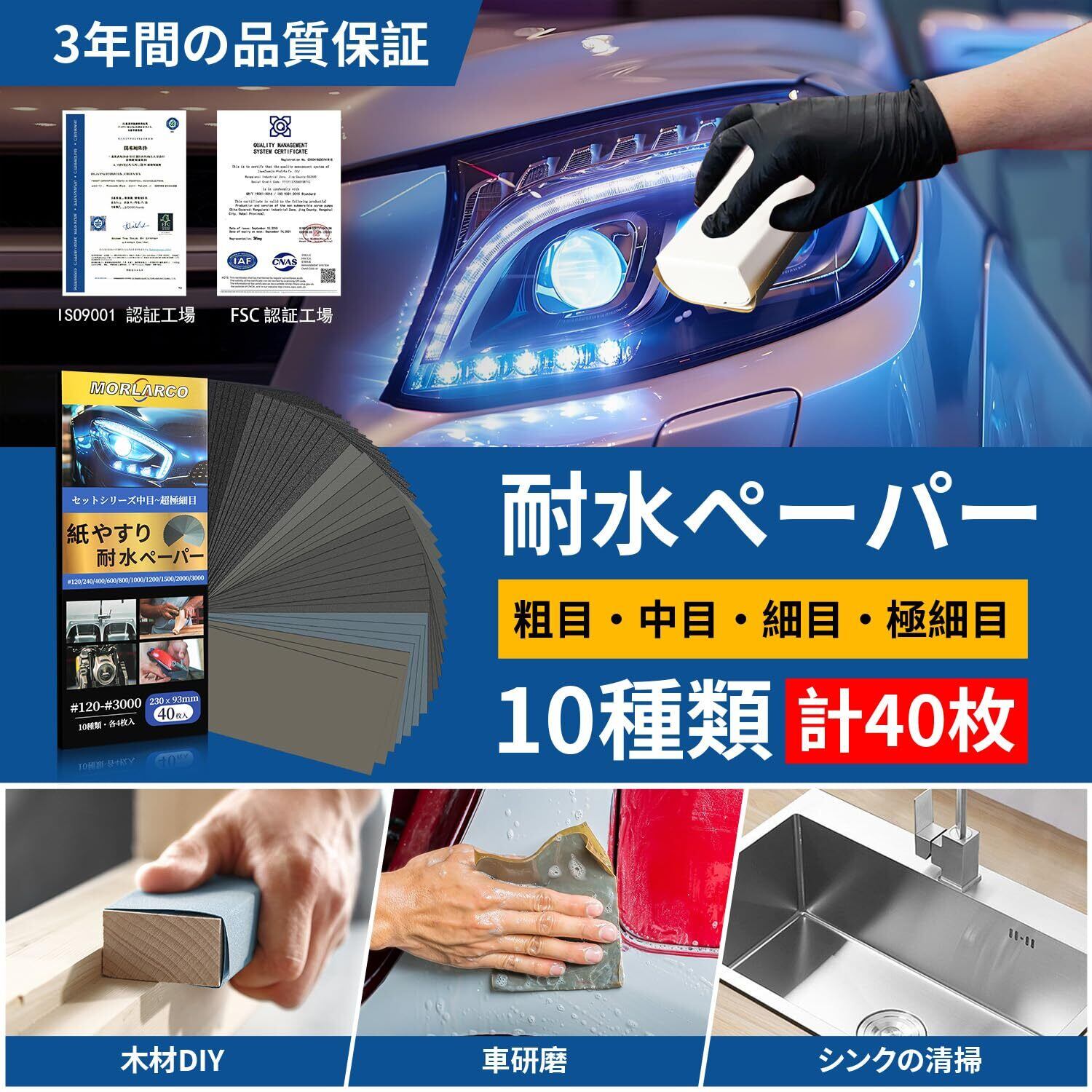 【新春セール】MORLARCO 耐水ペーパー セット 40枚10種類 120~3000番 紙やすり 230×93mm サンドペーパー (120 240 400 600 800 1000 1200 1500 2000 3000 各4枚入り) 紙ヤスリ 耐水ヤスリ ヘッドライト磨き 金属 木工 DIY作業に キッチンの掃に