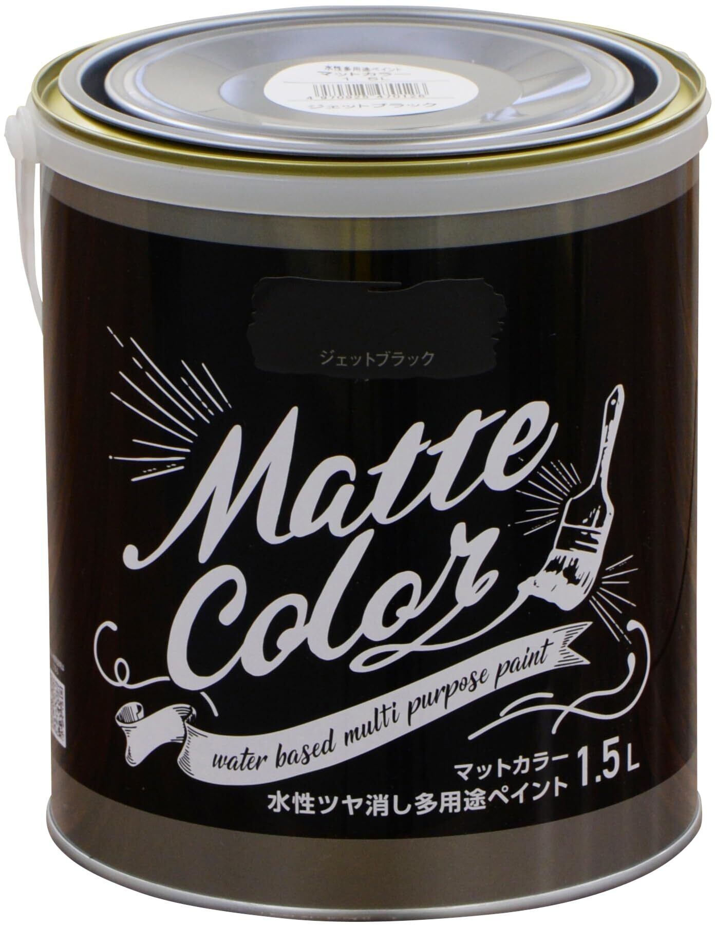 アサヒペン 塗料 ペンキ 水性多用途ペイント マットカラー 1.5L ジェットブラック 水性 多用途 艶消し マット調に仕上がる 1回塗り 低臭 抗菌 防カビ 防藻 壁紙 シックハウス対策品 日本製