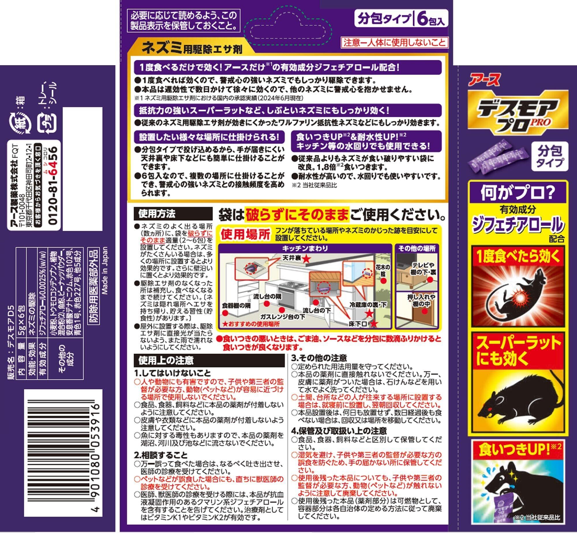 【数量限定】デスモア プロ ハーフ 分包タイプ 6包入 殺鼠剤 毒餌剤 ネズミよけ 罠 置き型 ネズミ捕り ネズミ退治 エサ 鼠 駆除 屋外 屋内