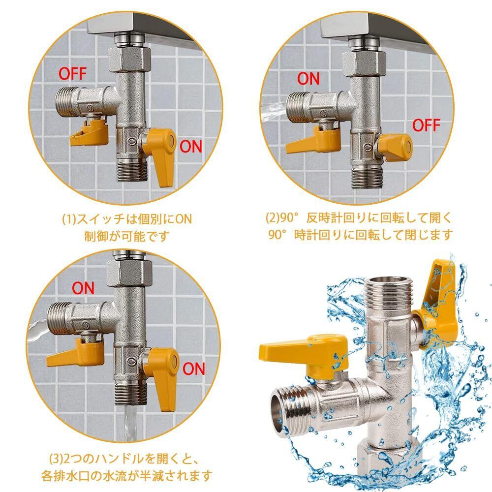【360度回転可動ジョイント】:360度回転可動ジョイントがあるので、任意の角度で締め付けることができるので、狭い場所でも操作しやすくなります。例えば、パイプの壁が近い場合、三方弁全体を回転させなくても、内歯ナットを回転させるだけで済みます。