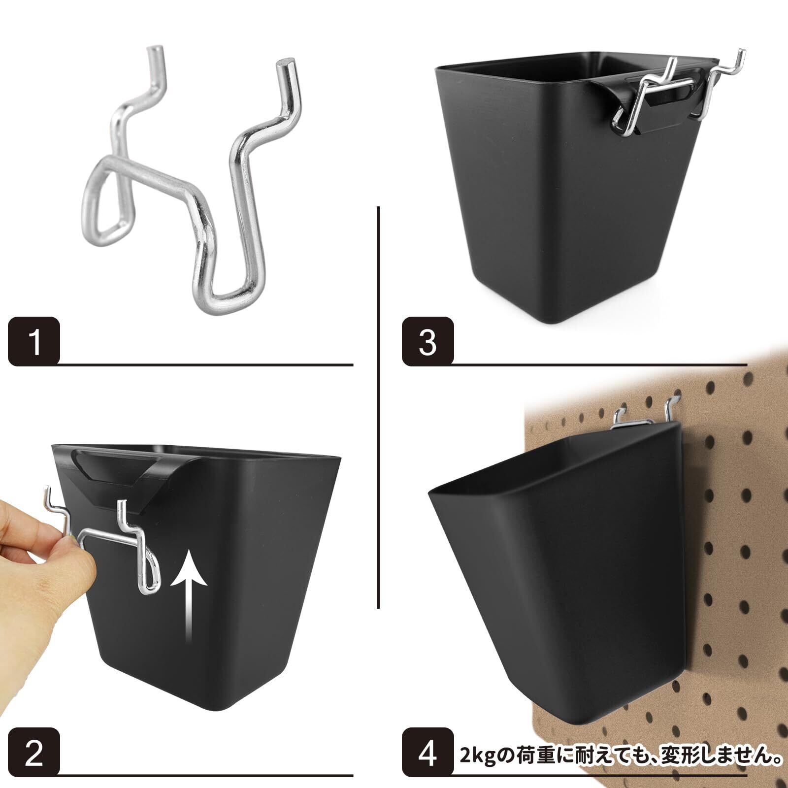 6個入り パンチングボードカップ ペグボードカップ 有孔ボード ペグボード収納ビン パンチングボードフック メタルフック付き ピッチ ボードフック ガレージワークベンチビン カップ ペグボードアクセサリーキット 吊り下げラック プラボックス付き ハードウェア ディスプレ ワークショップ 壁面収納 クラフトルーム (ブラック)