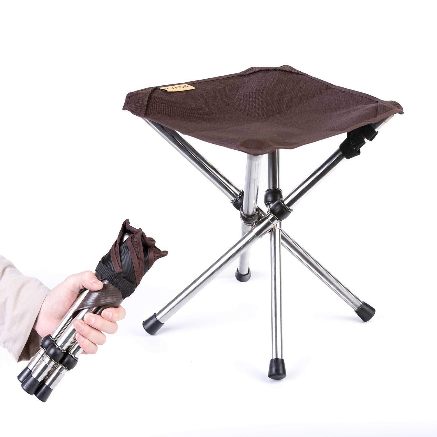 KVASS アウトドアチェア 折りたたみ椅子 コンパクトイス キャンプ 耐荷重80-100kg ステンレス製 超軽量 収納バッグ付き お釣り バーベキュー 登山 ブラウン