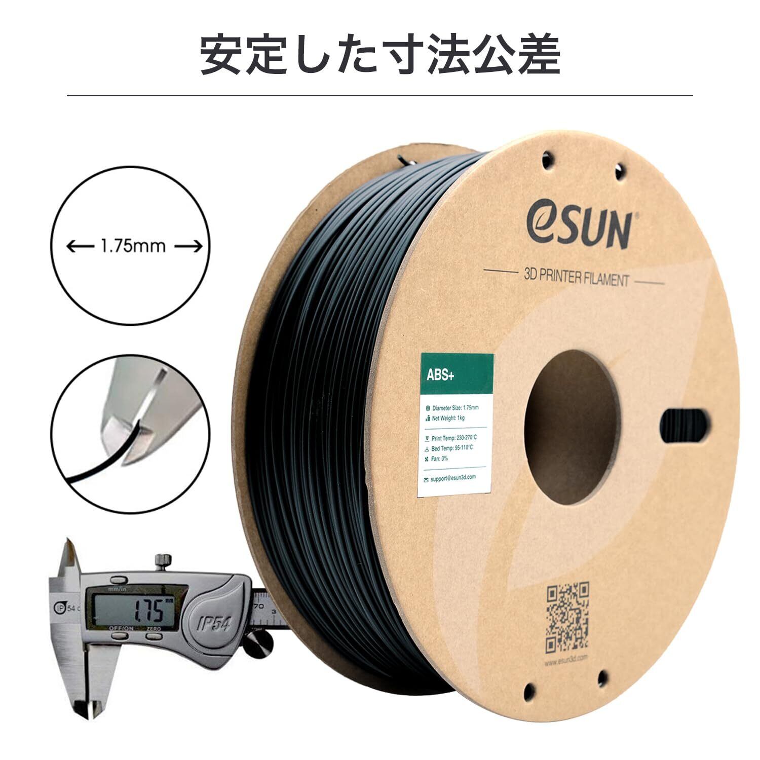 eSUN ABS Plus 3Dプリンターフィラメント ABS+ 寸法精度+/-0.05mm、1.75mm径 3Dプリンター用 正味量1KG (2.2LBS) スプール造形材料ABS樹脂材料 (黒)