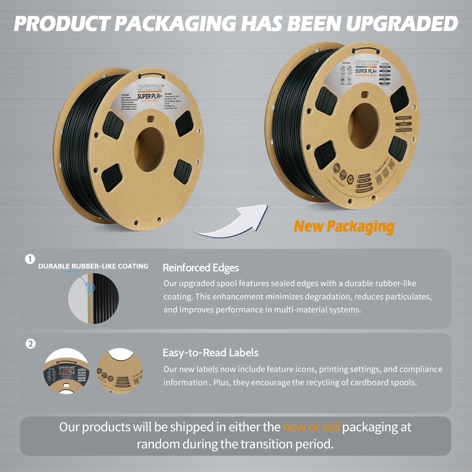 【詰まりフリー、気泡フリー、使いやすい】Overture SUPER PLA+ロールは詰まりフリー特許で設計・製造され、よりスムーズで安定した印刷体験をします。パッケージング前に完全に24時間乾燥し、乾燥剤を使用して真空シールされたナイロンの再封可能な袋に密封されており、気泡がなく印刷しやすいです。完全な機械的巻き取りと厳格な手作業の検査により、線が整然として絡みにくく、可能な折れや線の切れを避けます。
