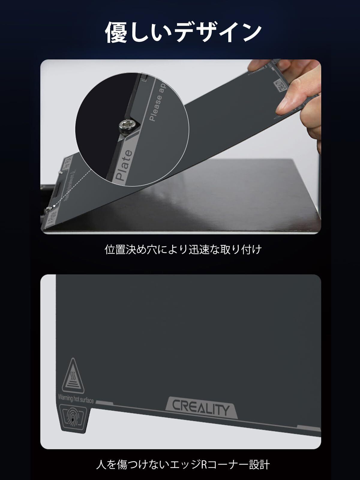 【プリントモデルの取り外しが簡単】PETばね鋼板は平坦度が高く、弾性が良く、繰り返し曲げても変形せず、型取りが容易です。 工具なしで、プレートを曲げるだけでプリントモデルを1秒で剥がすことができます。