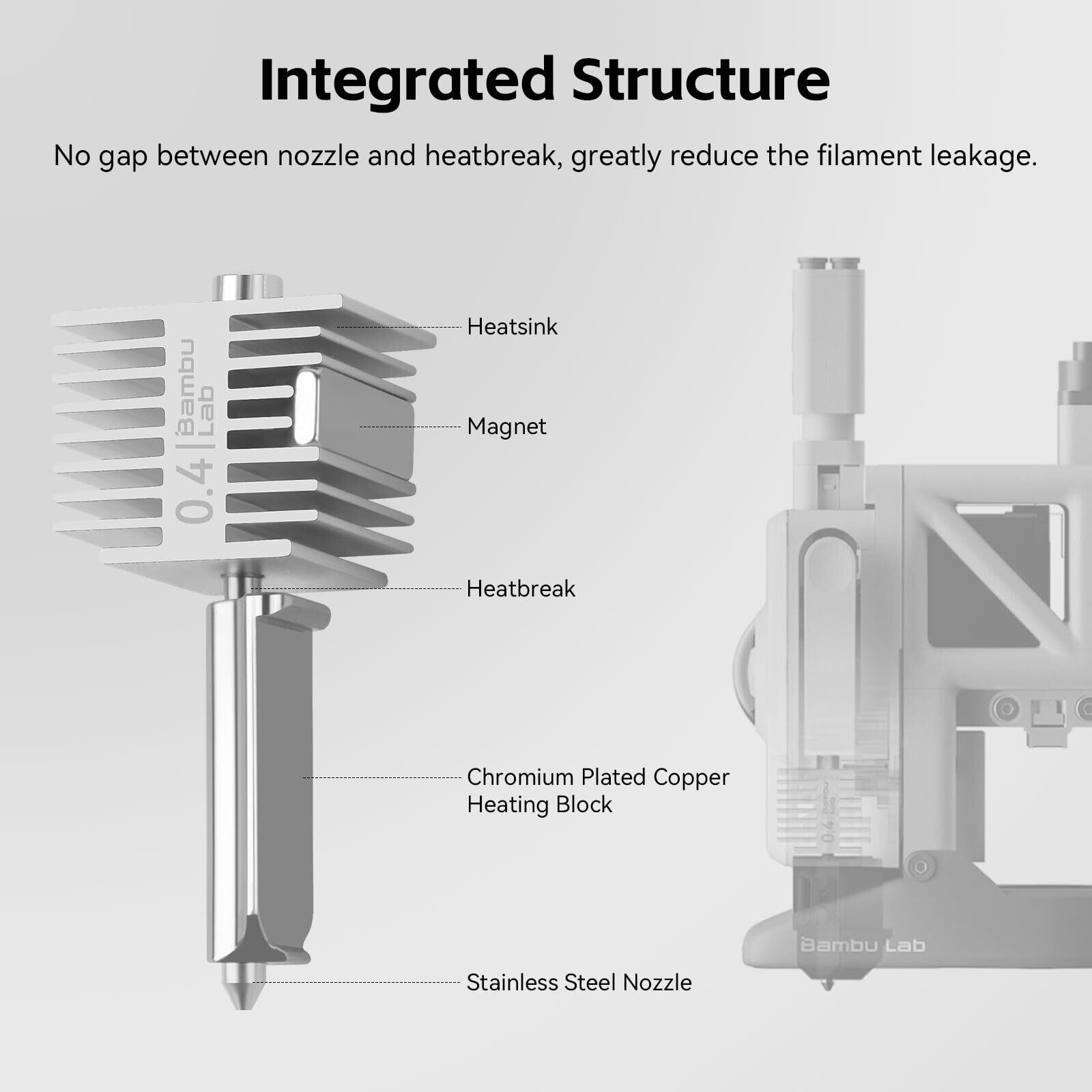 オリジナルBamboo Lab A1/A1miniホットエンド0.4mm高温&高速ステンレスノズル+加熱ブロック統合された構造 Bambu Lab A1&A1 Mini 3Dプリンタと互換性があります