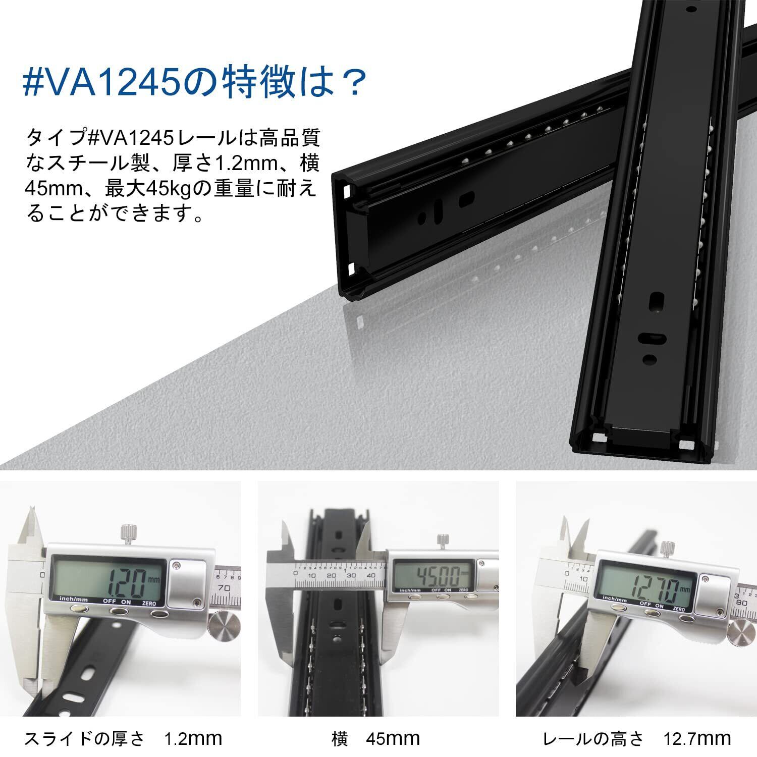 VADANIA スライドレール 250mm 3段引 VA1245 diy 引き出しスライドレール 左右1セット