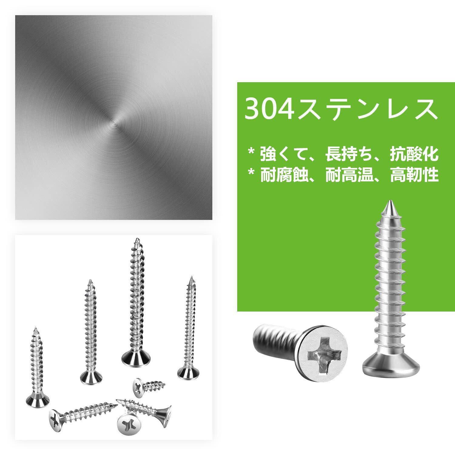 330本入 木ねじ 十字穴付皿 木ネジセット SUS304 ステンレス ビス 皿頭 タッピングねじ スクリューネイル ネジ釘 M3 M3.5 M4 汎用 木工用ビス 修理ツール セット 収納ボックス付き