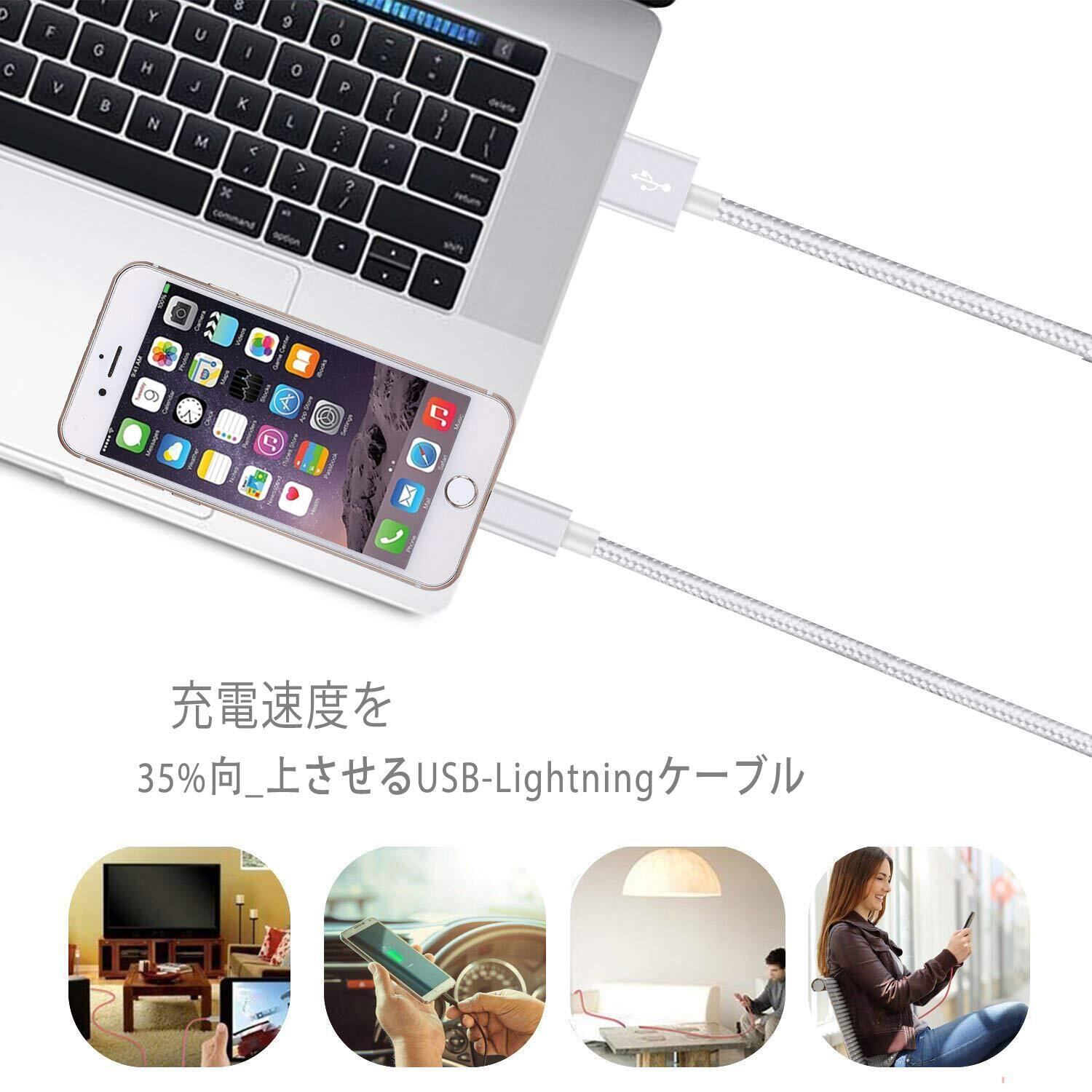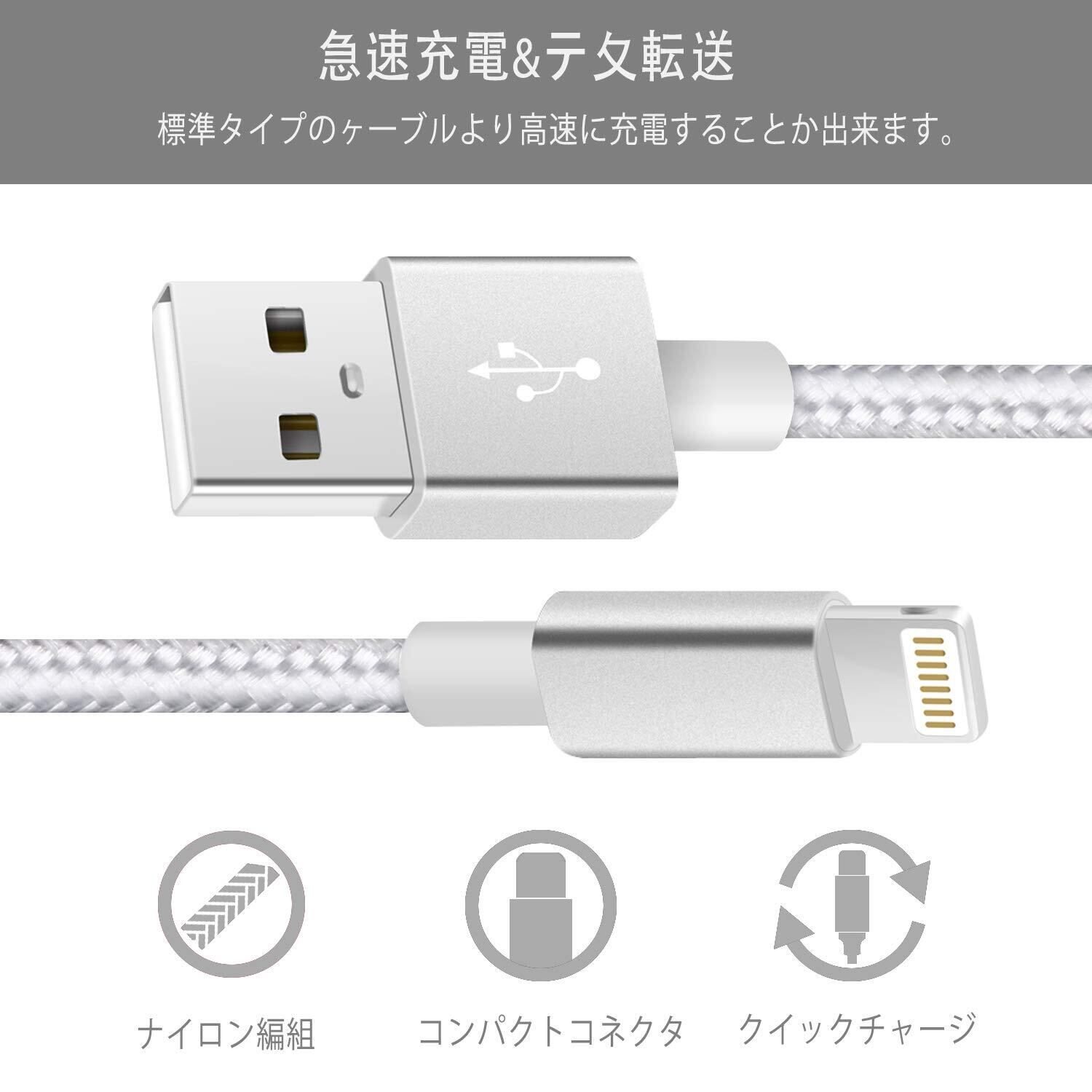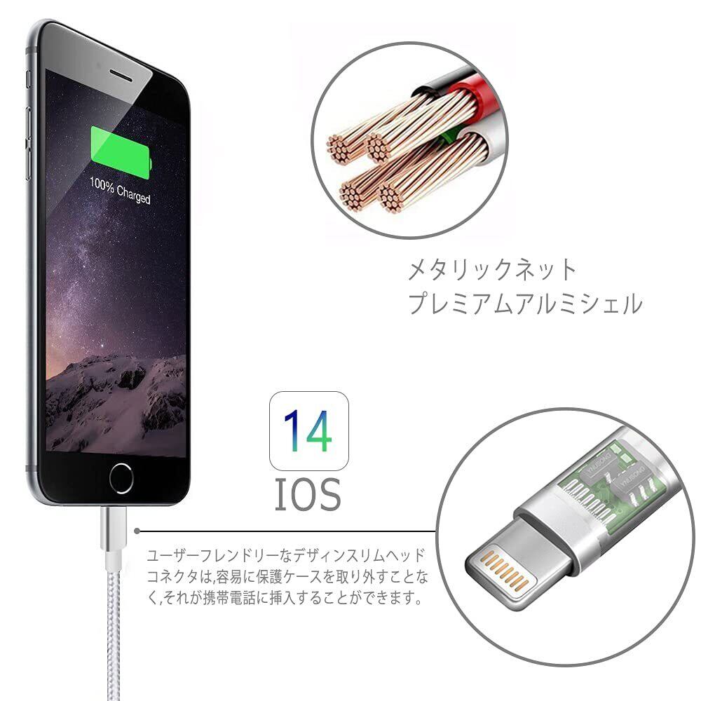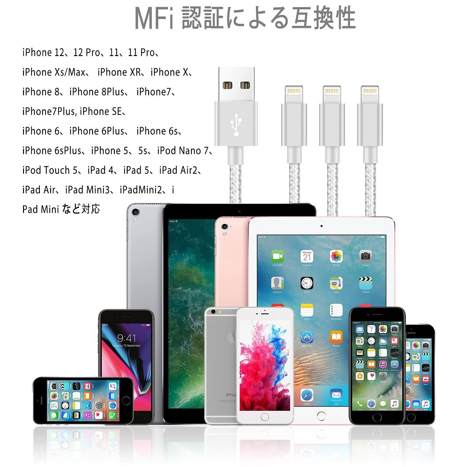 iPhone 充電ケーブル【MFi認証】2M 3本セット 急速 ライトニングケーブル lightningケーブル 高耐久編組ナイロン アイフォン 充電ケーブル データ転送 柔軟性 iPhone 14/13/12/11/XS/XR/X/87/6/5/iPad(シルバーグレー)