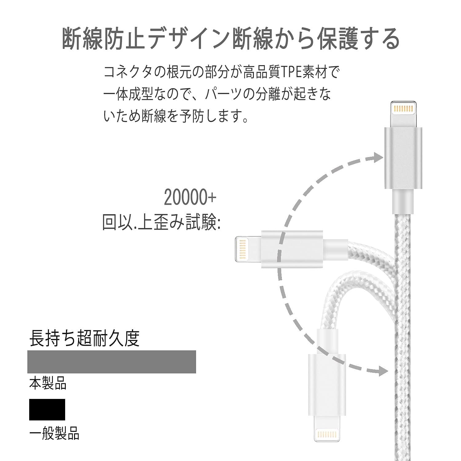 「断線防止」: 耐久性に優れた二重織りナイロン製のケーブルは、耐破壊性が極めて高いです。 また、コネクタの根元の部分は高品質TPE素材で一体成形されており、断線を防止できますので、ご安心使用ください。