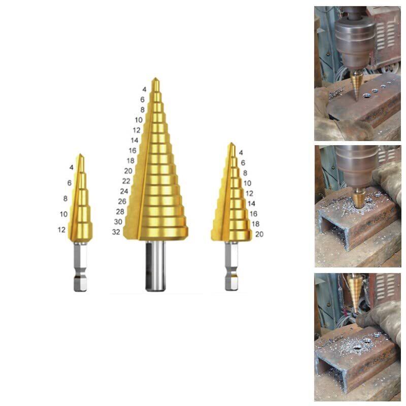 サムコス ステップドリル 六角軸 ドリル 3本セット チタンコーティング スパイラル HSS钢 4-32mm 4-20mm 4-12mm 穴掘りドリル 鉄工用 木工用 diy工具 家庭用 収納袋付