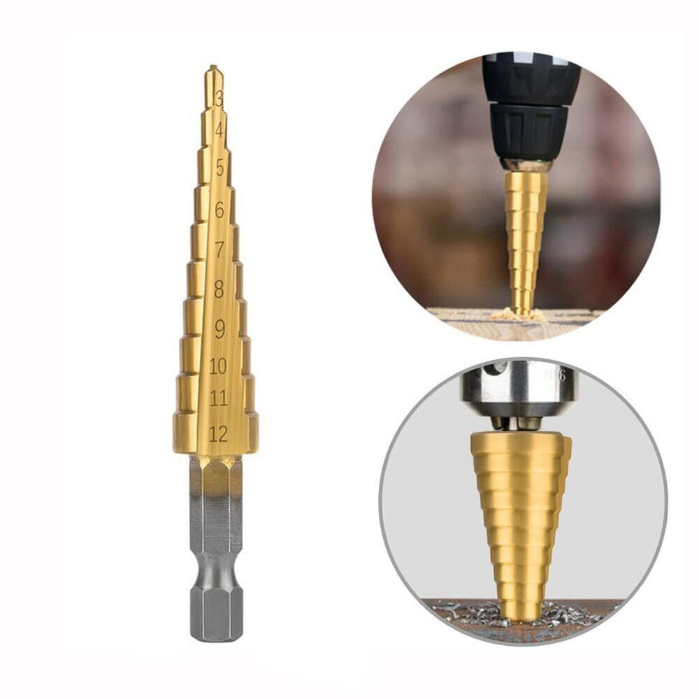 【数量限定】サムコス ステップドリル 六角軸 ドリル 3本セット チタンコーティング スパイラル HSS钢 4-32mm 4-20mm 4-12mm 穴掘りドリル 鉄工用 木工用 diy工具 家庭用 収納袋付