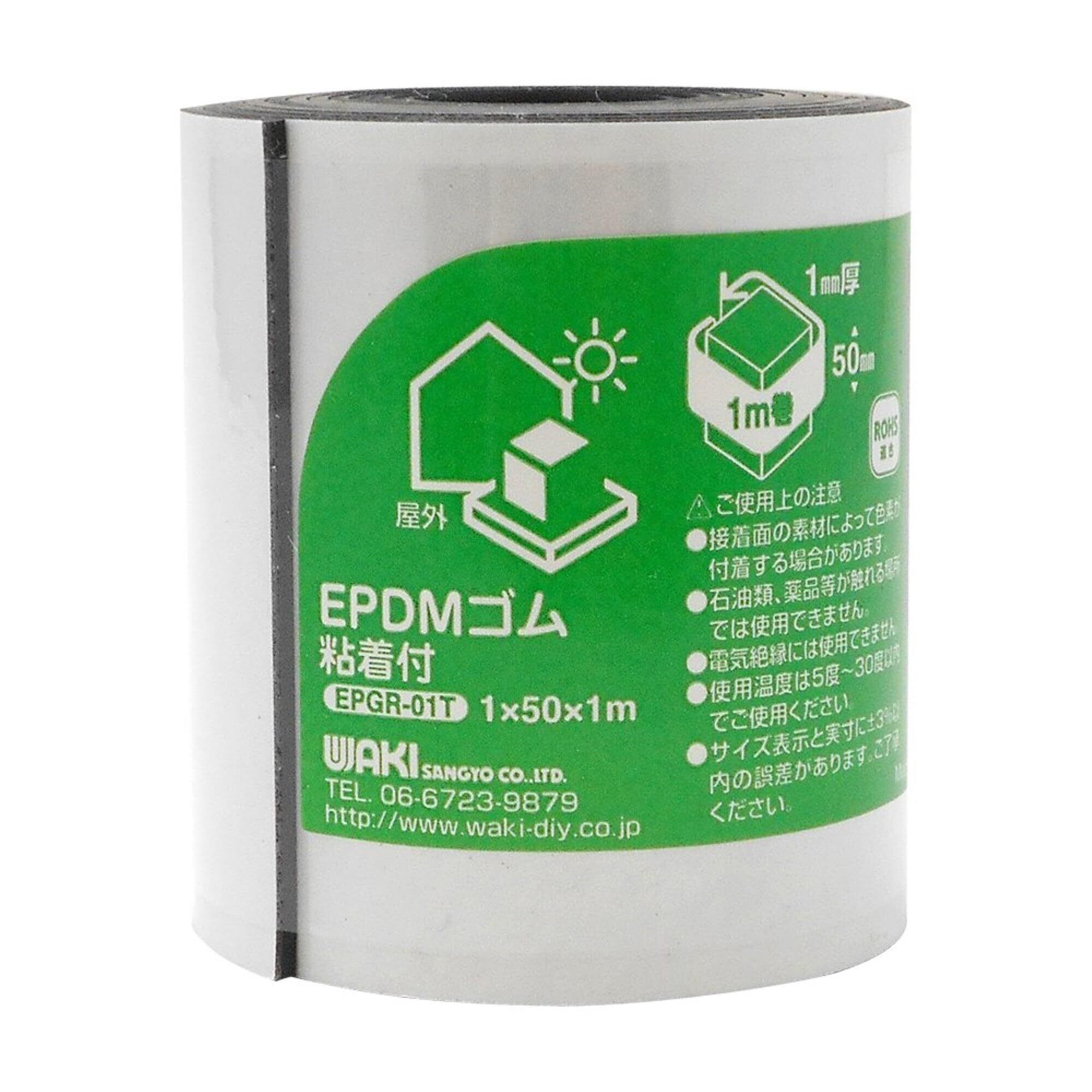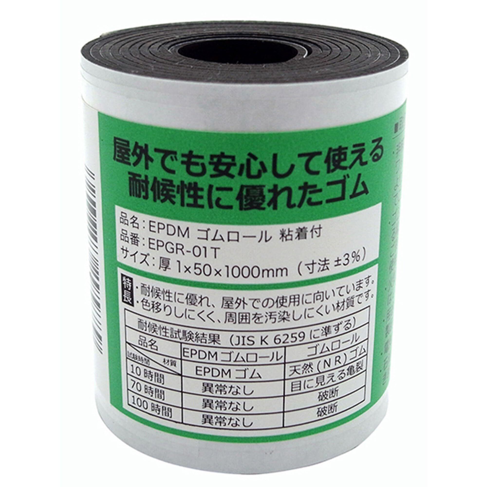 和気産業 EPDMゴムロール 粘着付 黒 1X50X1000mm 屋外 ゴム シート EPGR-01T