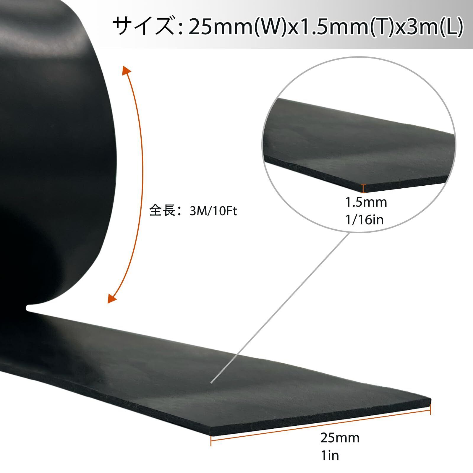 【切りやすい】ゴムテープは、刃物やハサミで簡単に希望の形やサイズに切ることができ、あらゆるDIYプロジェクトに最適です。ゴム製シールストリップサイズ:3メートル、幅25mm、厚さ1.5mmです