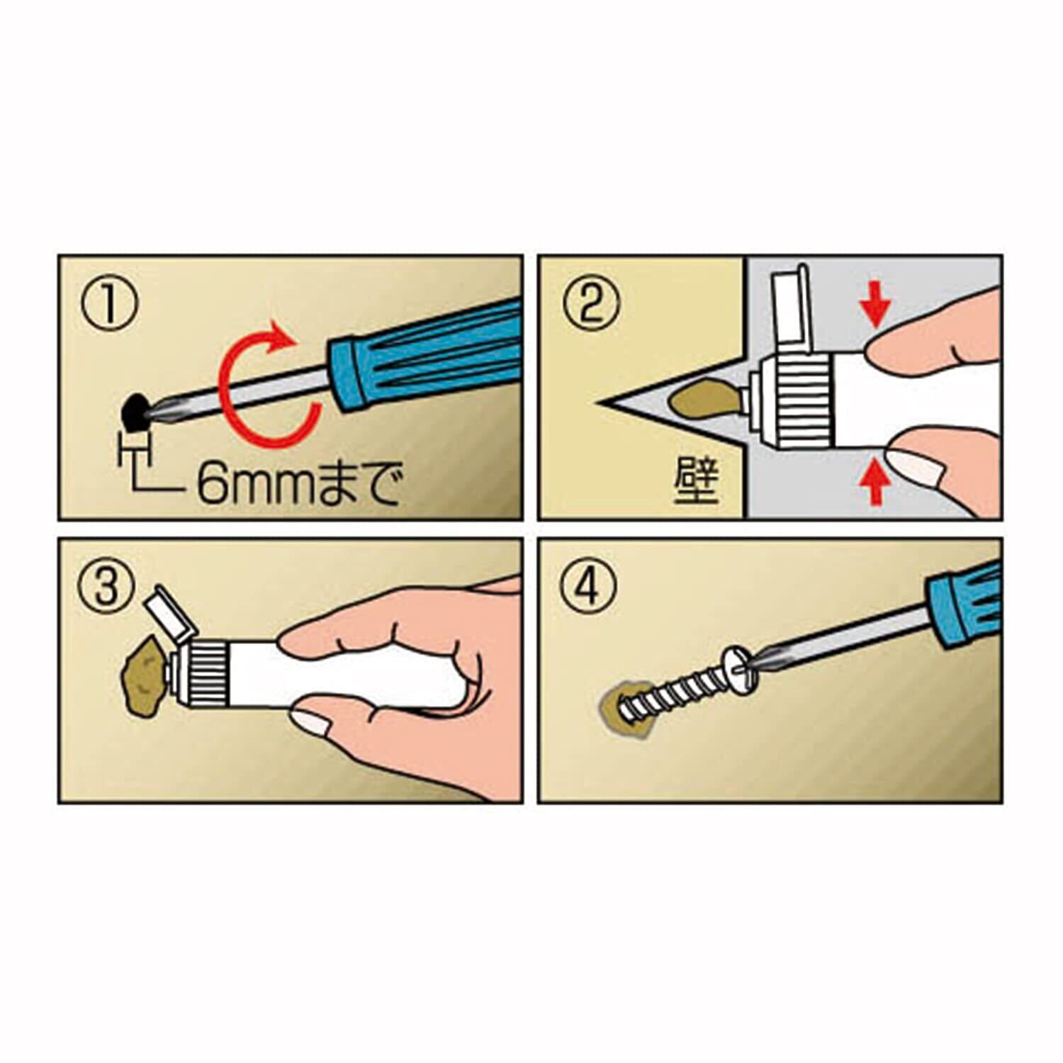 ぐらぐらのねじ穴に注入するだけで、木製の家具や壁にねじが効くパテ