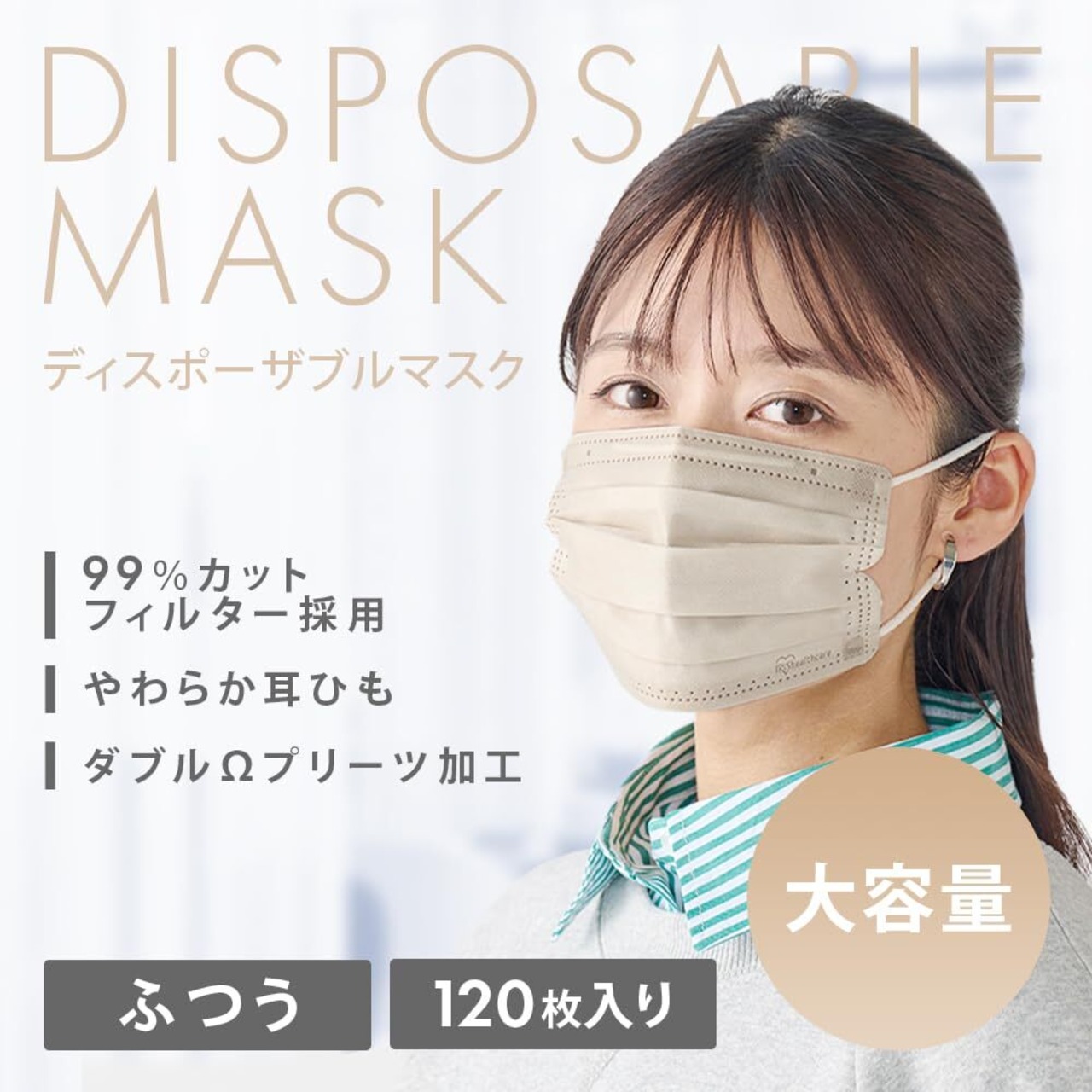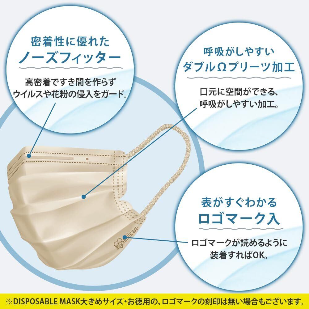 [アイリスオーヤマ] プリーツ型マスク 120枚 ふつうサイズ 不織布 ディスポーザブル ペールベージュ PN-120MXQ