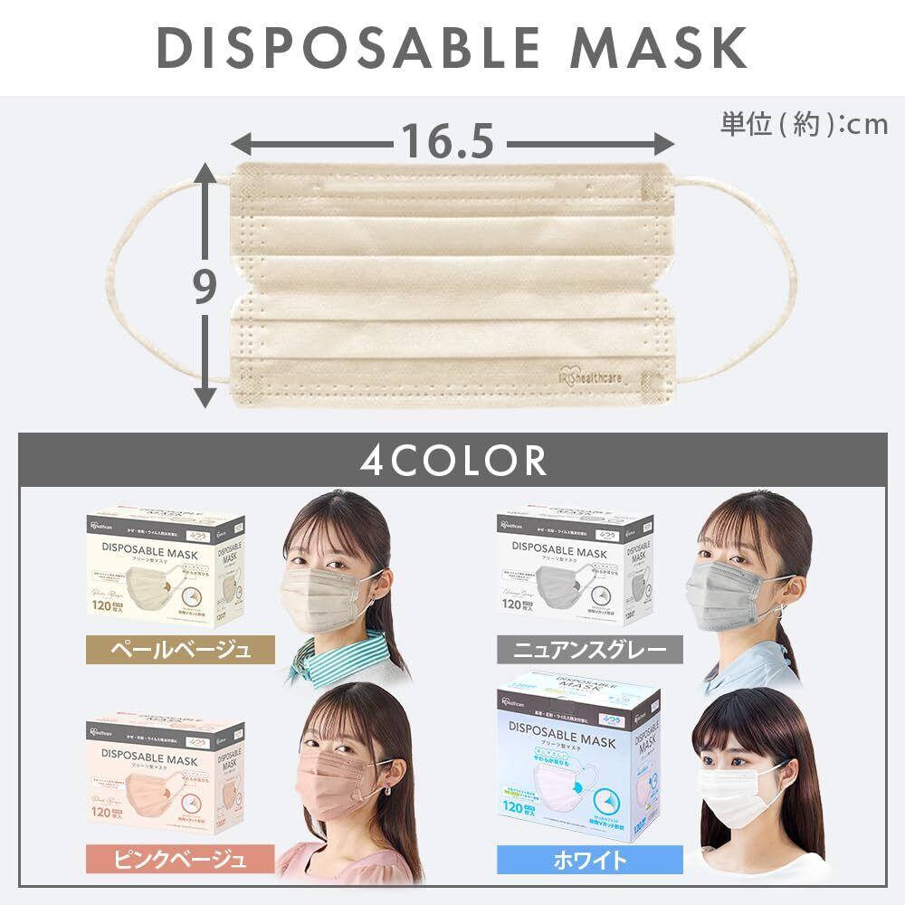 【在庫セール】[アイリスオーヤマ] プリーツ型マスク 120枚 ふつうサイズ 不織布 ディスポーザブル ペールベージュ PN-120MXQ