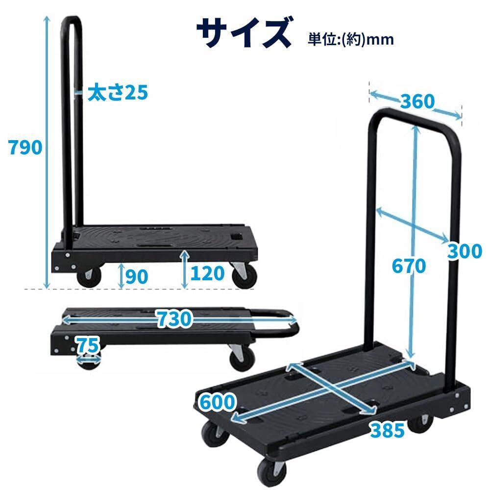 【 限定】アイリスプラザ 台車 折りたたみ 限定カラー【ブラック】 持ち手ブラック 耐荷重 100kg コンパクト 軽量 静音 キャスター付き スッキリ収納