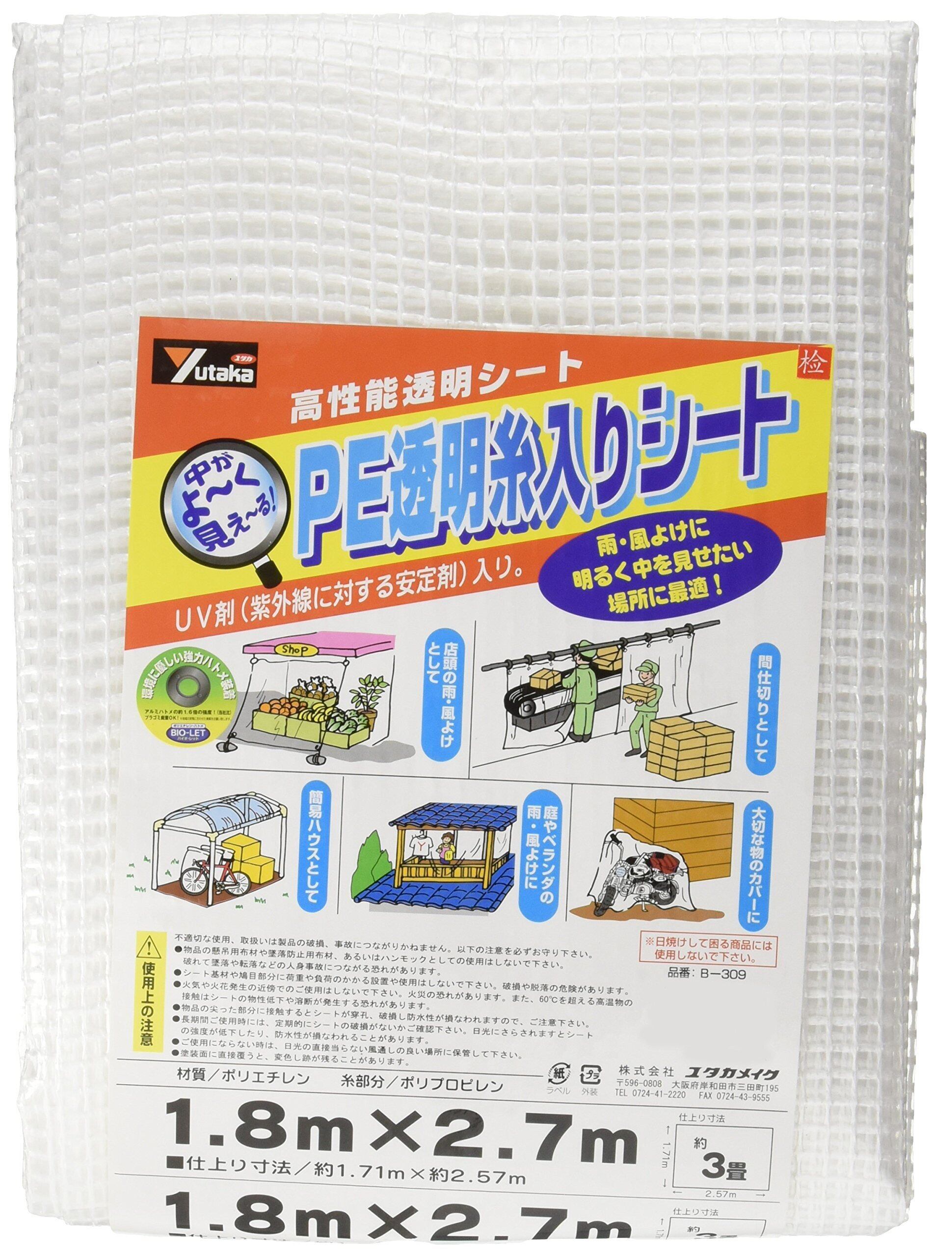 ユタカメイク PE透明糸入りシート 1.8m×2.7m B-309 間仕切り 雨除け 風除け 埃除け