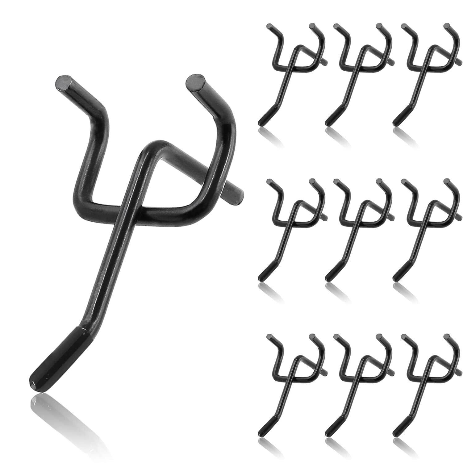 【2024升级版、コスパ抜群!】スチール製の10個有孔ボードフックセットです、パンチングボード 棚 フック、先端にはゴムが付いています。1-6mmボード対応T型フックセットです、ボードを最大限に活用して収納のスペースを広げます。様々な用途にお使い頂けますので、ぜひ充実したDIYにお役立てください。穴の直径5mm、穴ピッチ25mm、厚さ1~6mmの有孔ボードにご使用頂けます。本体:10個入、長さ:5cm、ブラック、有 孔ボードフック直径:3.5mm(適合穴径:5mm)、材質:スチール製。重要なヒント:購入前にボードの厚さをよくご確認ください!