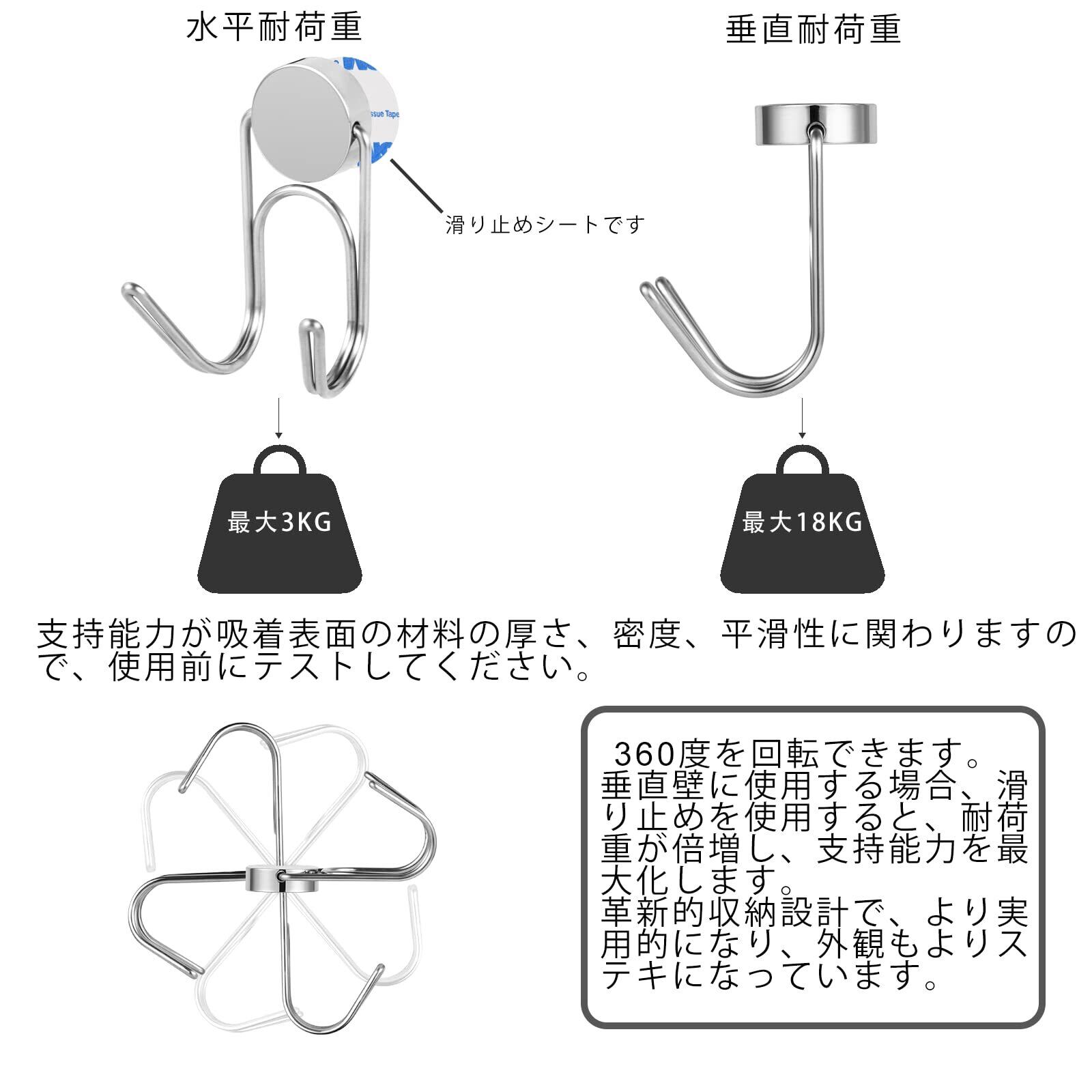 【在庫セール】Wowfill マグネット フック 磁石付き 304ステンレス製 防錆 垂直耐荷重18kg 水平耐荷重3kg 防腐食 キッチン用 オフィス用 浴室 冷蔵庫 玄関 壁掛け用 4個(25mm-2-18kg, シルバー) | allstore3