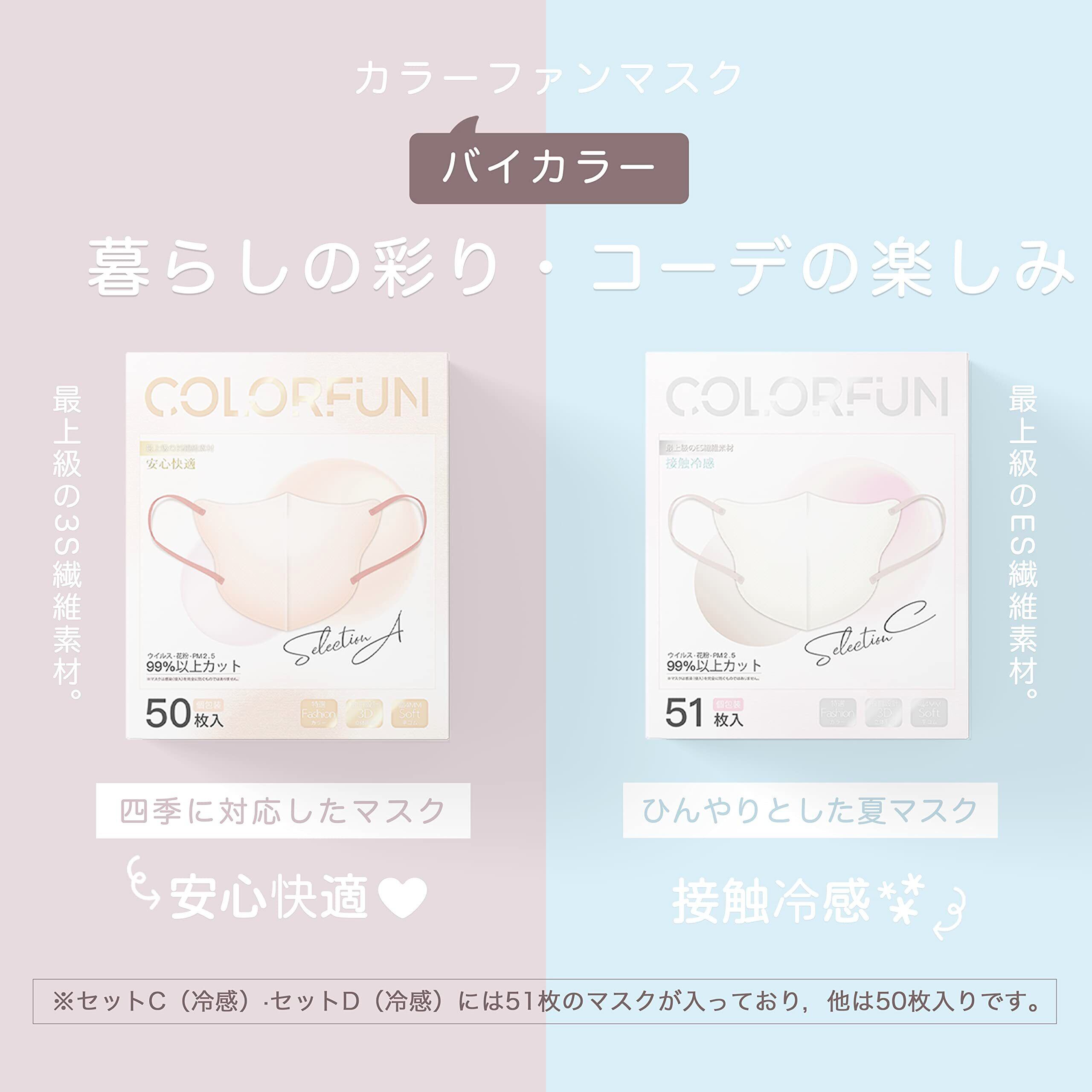[モエライフ] 【2023新色 個包装 50枚】3D マスク 冷感マスク バイカラー 血色マスク 夏用マスク 不織布 カラーマスク 立体マスク 3層構造 小顔 不織布マスク ダイヤモンドマスク 接触冷感 ひんやりマスク 涼しいマスク 息がしやすいマスク 使い捨て おしゃれ メガネが曇りにくい 口紅が付きにくい 耳が痛くならない ピンク ベージュ (セットA【50枚】, 普通タイプ·個包装)