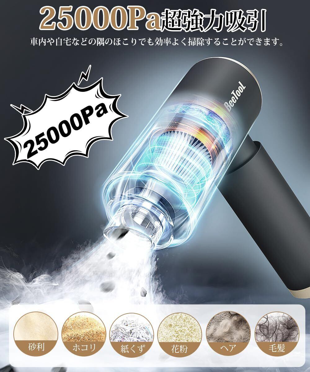 【新登場】ハンディクリーナー 多機能 車用掃除機 コードレス 25000Pa 強力吸引力 BeeTool【吹き飛ぶ/吸い込む/空気入れ/空気抜き】ハンディ掃除機 パワフル 長時間稼働 超軽量0.36kg 乾湿両用 USB充電式 付 人気 業務用/車用清掃/家具/家庭用 日本語説明書付 ZX-106
