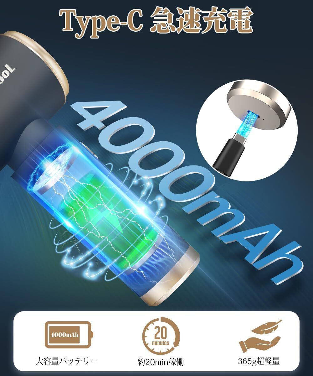 【4000mAh内蔵バッテリー・USB充電式】ハンディ掃除機は大容量4000mAhバッテリーが内蔵され、約3.5時間のフル充電で20分連続使用可能です。USB充電式ので、万が一充電を忘れた場合、付属のケーブルに接続し充電できます。コードレス式で、家/オフィス/車どこでもとても便利です。最初に使用する前に完全に充電してください。5V/1Aのプラグのご使用をお勧めいたします。