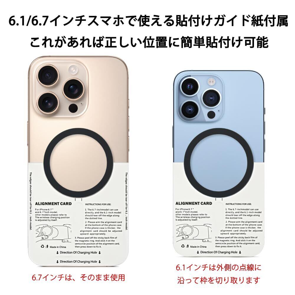 (梱包内容) 5*マグセーフシール、5*透明バックプロテクターフィルム、製品取り付けロケーターカード。※ 製品自体は磁力持ちません。磁気のある製品と連携に使用することがお勧めです。指紋防止コーティングがついていないPCまたはTPUケースにのみ対応しています。
