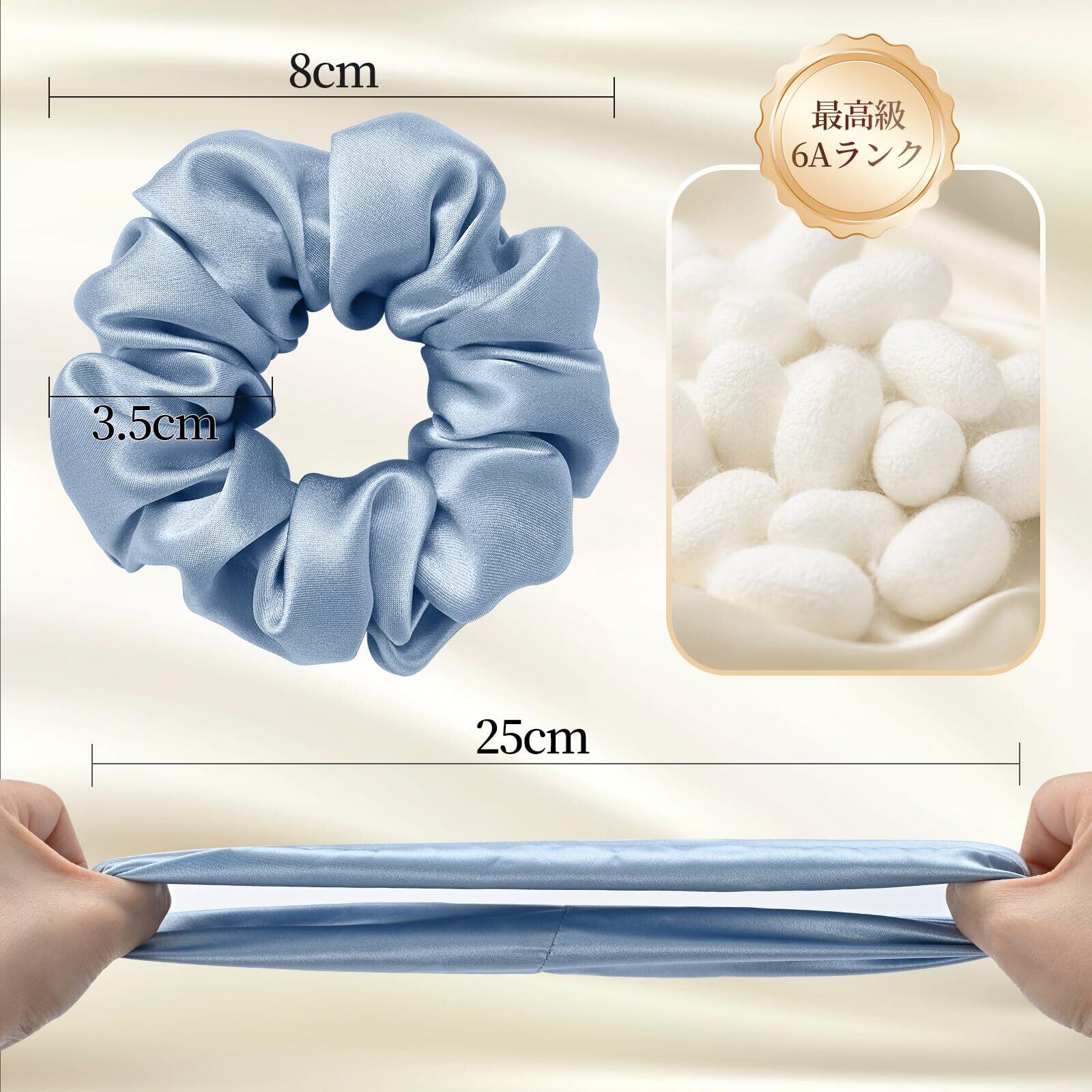 IRIYULI シルク シュシュ 3.5cm 24色 天然シルク100% ヘアゴム 19匁 / 22匁選べる 摩擦軽減 静電気防止 髪に優しい 跡がつかない 髪ゴム 高弾性 おしゃれ 大人 女性 ヘアアクセサリー 母の日ギフト (ミントブルー, 19匁)