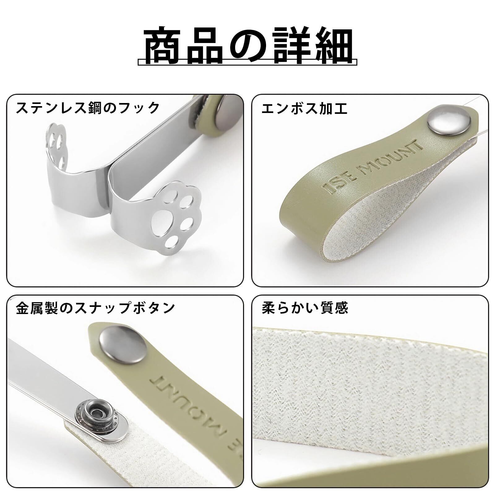【高品質素材】フック部分は高品質ステンレス鋼製、錆にくいし耐久性が抜群です。ベルト部分は革製、丈夫、おしゃれです。