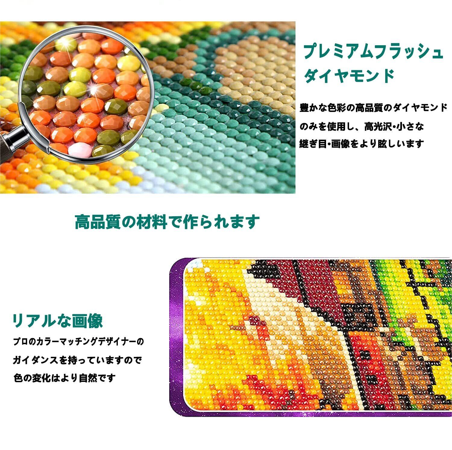 【優れた5Dモザイクアート素材】--キラキラと輝くダイヤは色鮮やかで色褪せません。 さらに、ダイヤモンドの不足を避けるために、ダイヤモンドの数を20%-30%増やしました。 絶妙なキャンバスは、高品質のプリンターで一流の品質で正確に印刷されます。保護フィルムに粘着性があって、健康に優しい素材で作られ、安全、制作は刺繍より簡単ですのでお子様や手芸初心者にもお勧めです。