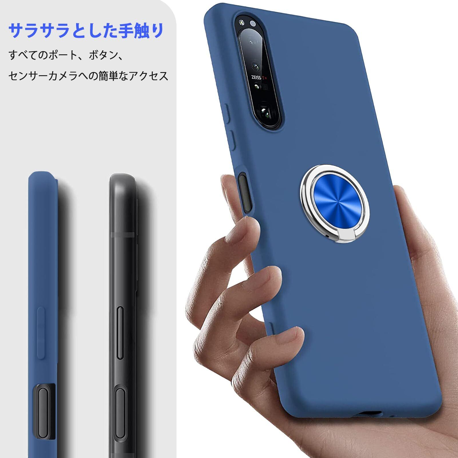 Xperia 5 ケース リング 耐衝撃 シリコン SO-01M/SOV41/901SO カバー TPU 薄型 リング付き かわいい ストラップホール付き 指紋防止 レンズ保護 磨り表面 指紋防止 擦り傷防止 指紋防止 滑り止め 軽量 黄変防止 脱着簡単 青C91-xp5-07