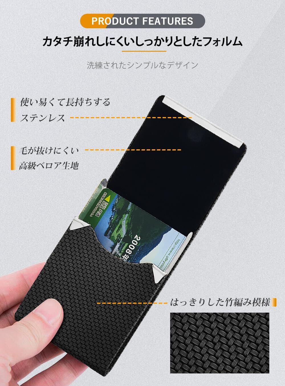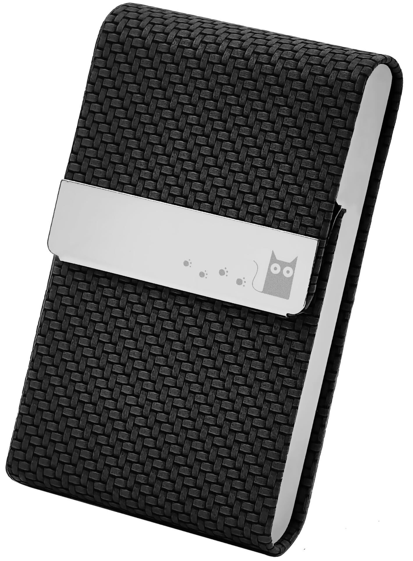 [Xsimant] 名刺入れ 角が折れない 縦型 名刺ケース 柄 マグネット式 1秒開閉 レディース メンズ ビジネス (黒色 竹編み模様 猫)