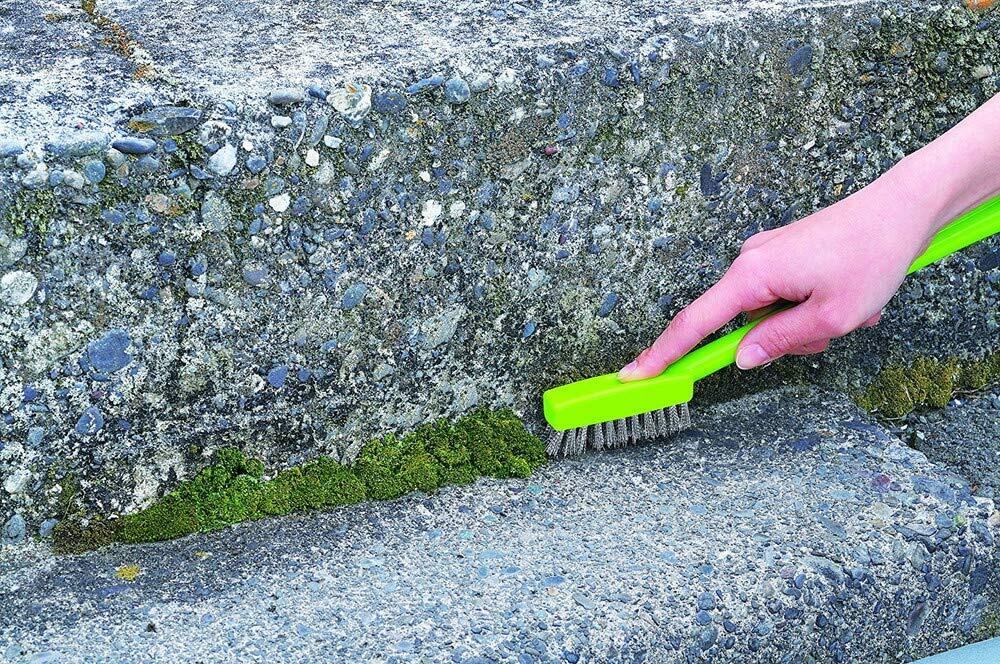 ●コンクリートブロックなど、硬い材質にこびりついたコケが素早く取れる