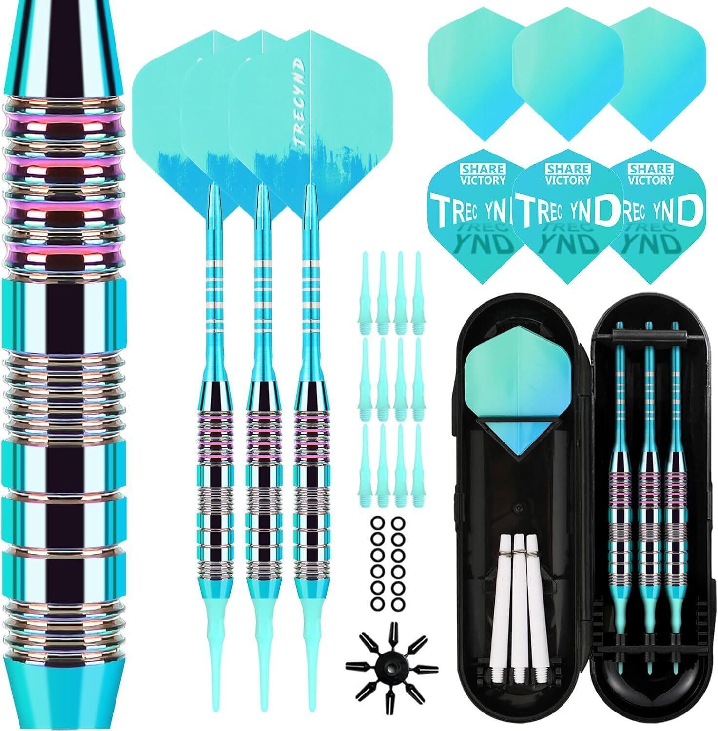 【初心者】本製品は、初心者にぴったりのソフトダーツセットで、豊富なパーツが内蔵されており、初心者にも便利で素早く上手に、自分に合ったコーディネートを組み合わせています。