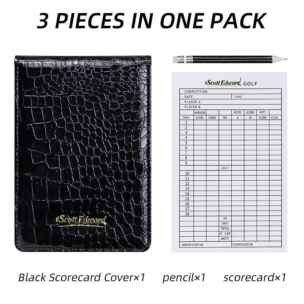 【在庫セール】Scott Edward ゴルフ スコアカードカバー, ゴルフ スコアカードカバー レザー スコアカードホルダー 統計とスコアトラッキング 防水 ソフト 厚手