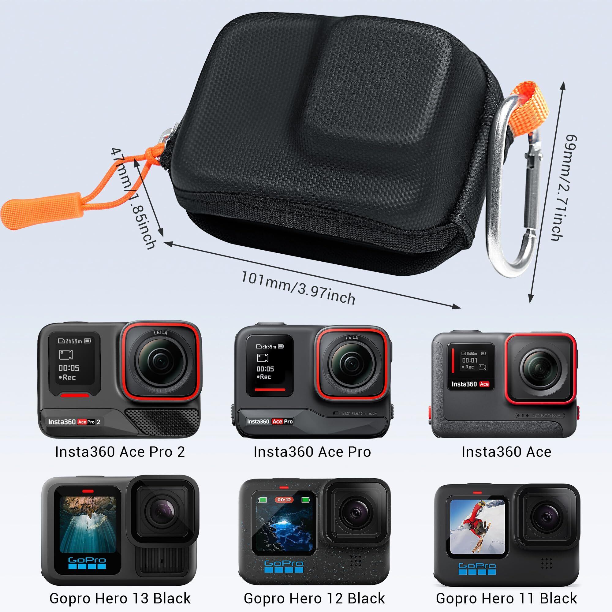 幅広い互換性:このInsta 360 Ace pro携帯ケースは、Insta 360 Aces pro 2、Insta 360 Ace、GoPro Hero 12 Black/11/10/9アクションカメラなど、さまざまなアクションカメラと互換性があります。