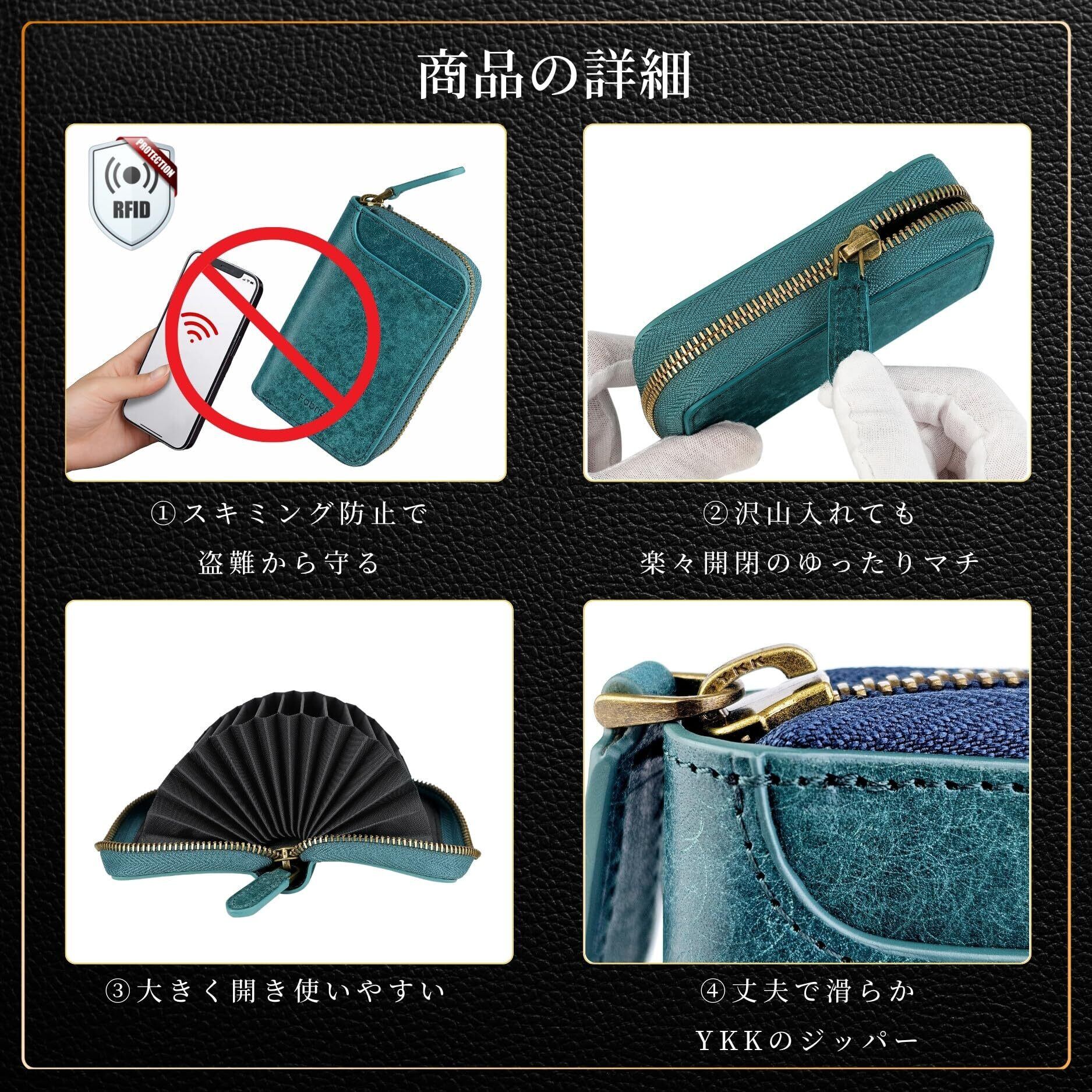 【 磁気防止 安心 使いやすい 】内側にスキミング防止 のシートを埋め込んであり、磁気防止 で安心。 特注の ファスナーには、広めのマチがあり、沢山 カードを入れても、スムーズな開閉。