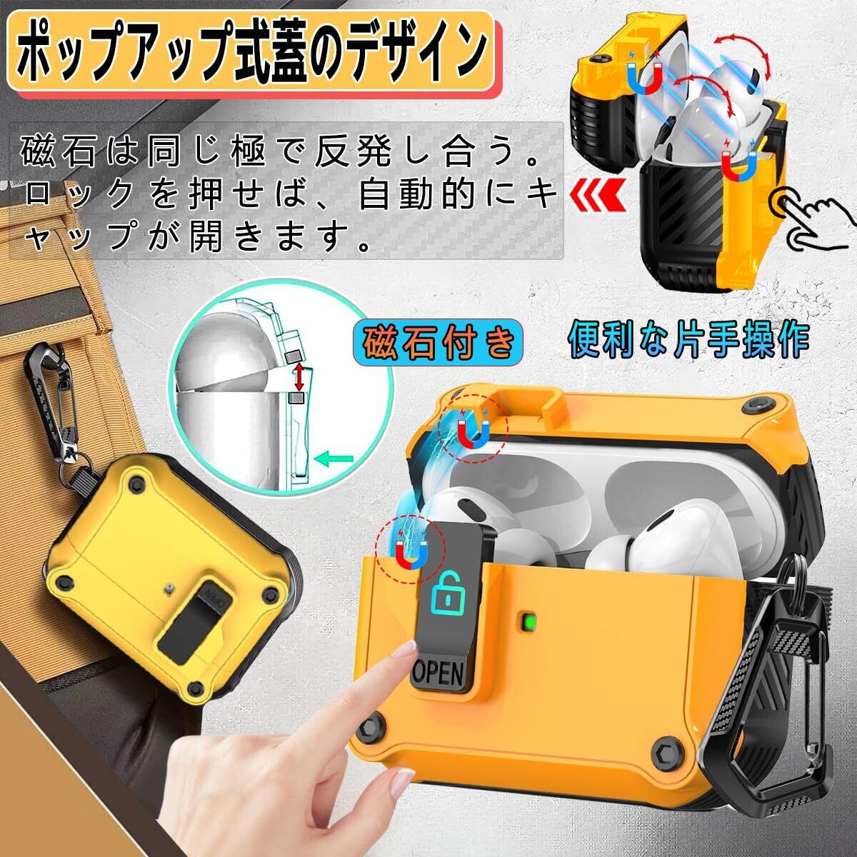 OJBSEN Airpods 第4世代 ケース AirPods4 ケース 2024 (USB-C) 対応 安全ロック付き 自動ボタン エアーぽっず 第4世代 カバー クリーナーキット付き Magsafe ワイヤレス充電対応 LEDライトが見える エアポッズ4カバー カラビナ付き 分離式 ハード TPU 全面保護 耐衝撃 傷防止 軽量 (イエロー)
